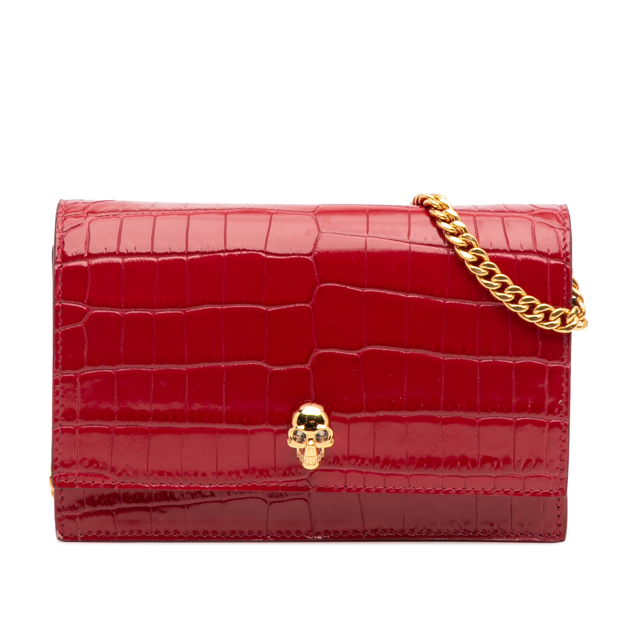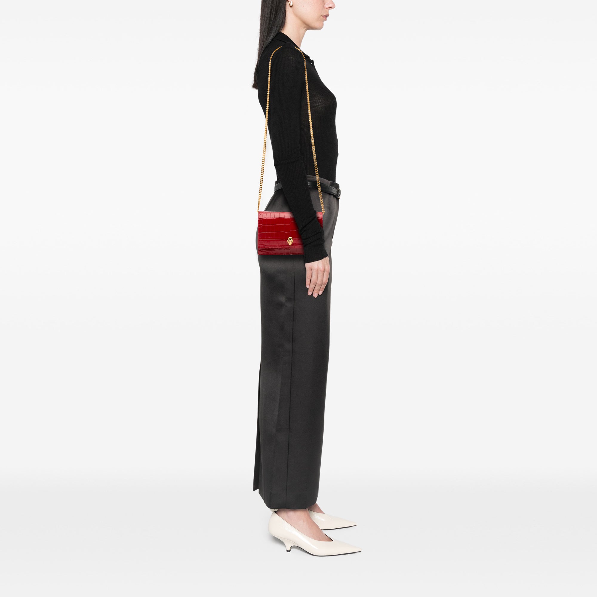 Alexander McQueen Small Crocodile Embossed Calfskin Skull Crossbody