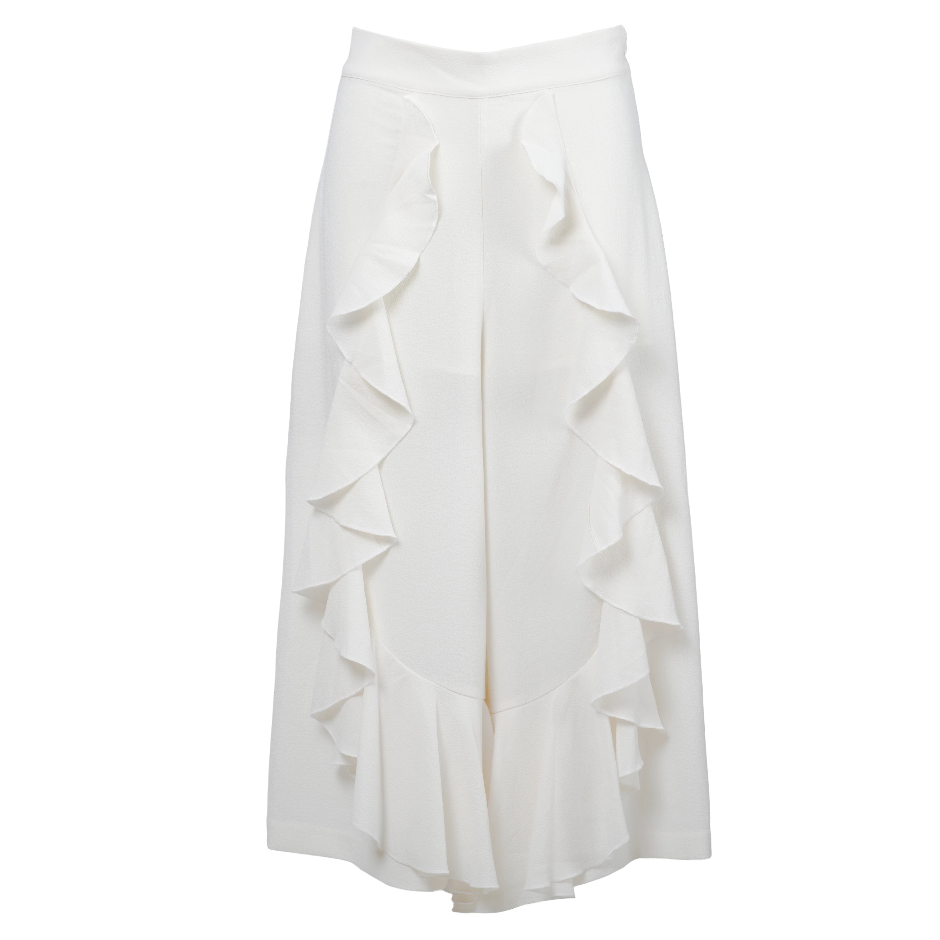 The Alice McCall ruffle pants combine elegance, charm, and originality, making them a unique and standout piece. Featuring a high waist, a flattering cut, and delicate ruffles, these pants reflect the playful and refined aesthetic typical of the brand.