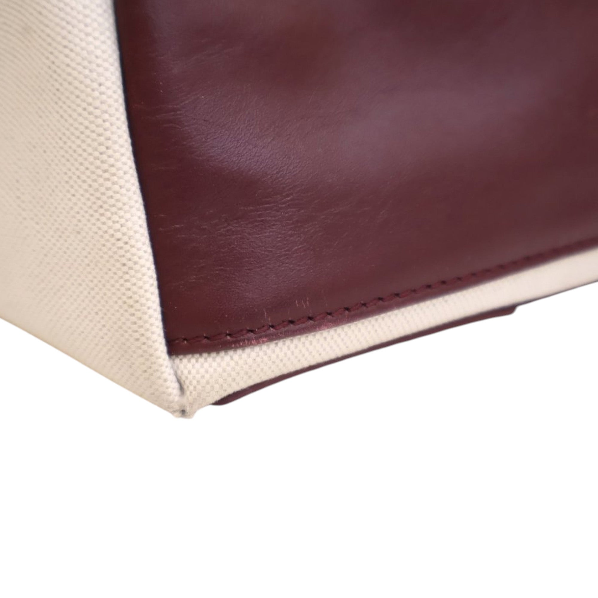 The Navy Cabas features a canvas body with leather trim, flat leather handles, and an open top. Retail Price: 1250.00