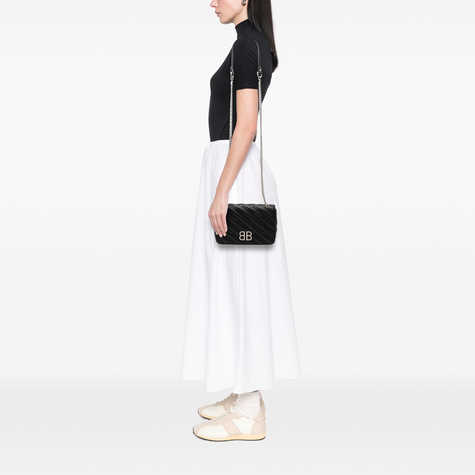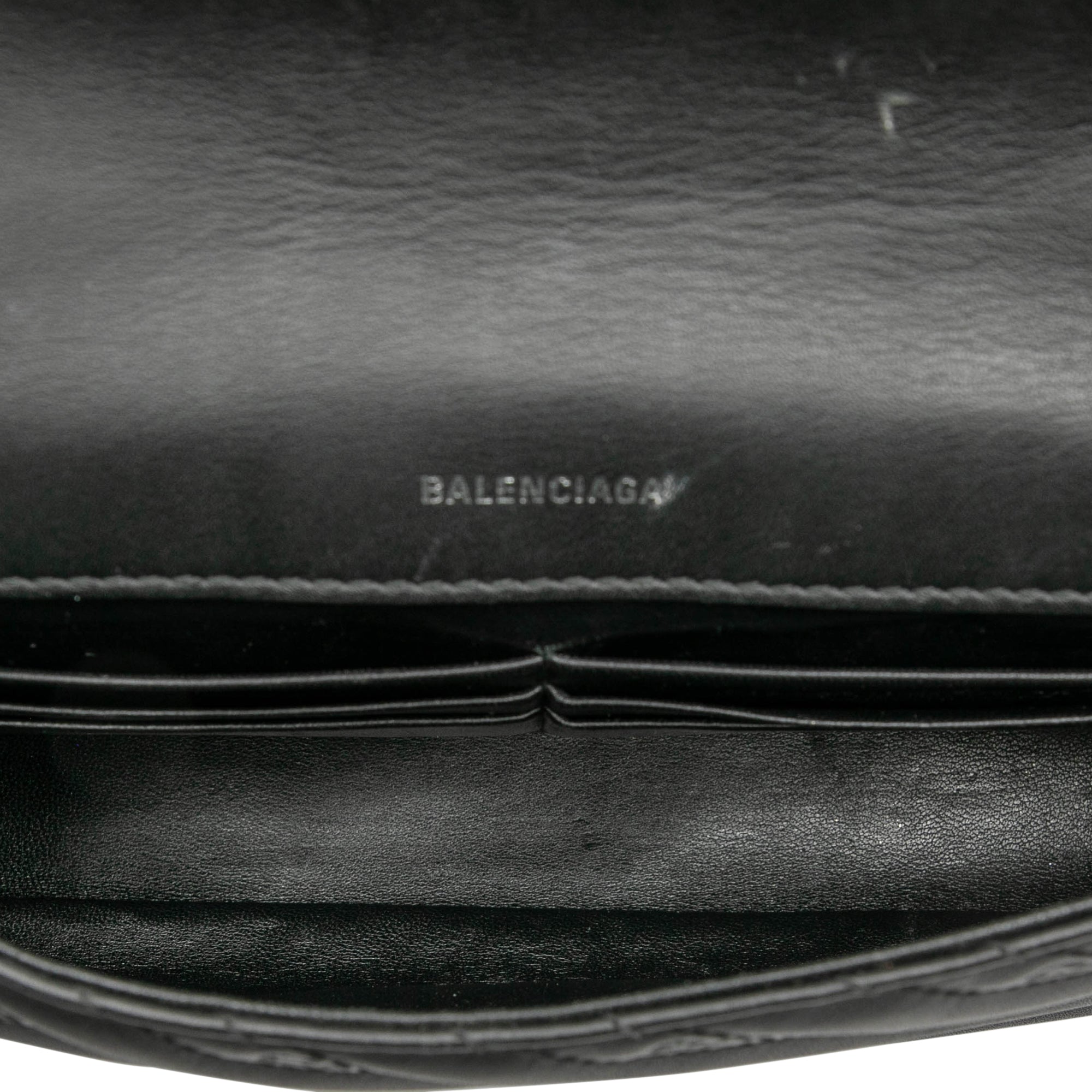 Balenciaga Embossed Leather Allover Logo BB Wallet on Chain