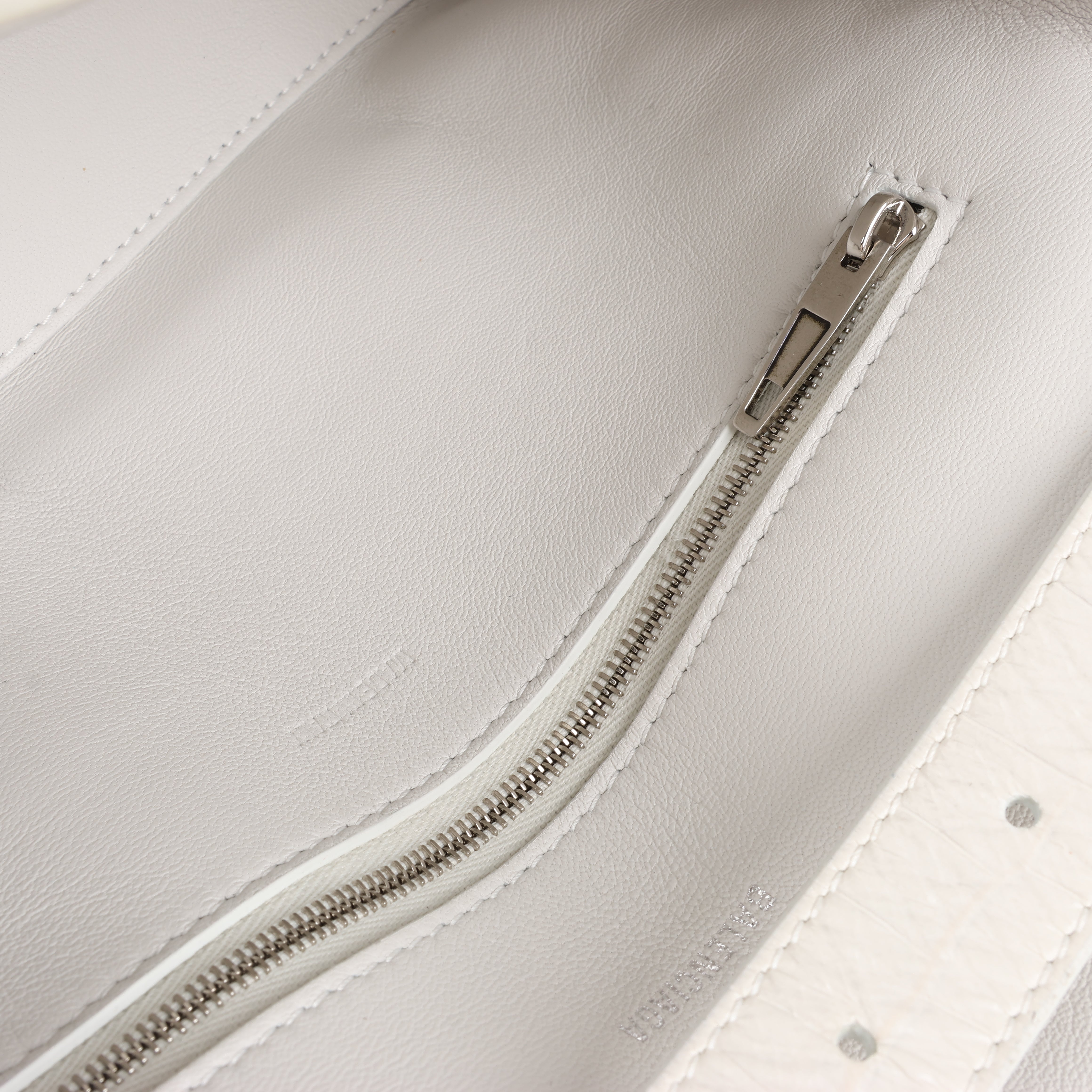 Brand: BalenciagaModel: HourglassSize: -Width: 26 cmHeight: 16 cm Exterior Condition: ExcellentInterior Condition: ExcellentCondition Details: Exterior is in great condiution with small rubbings at the bottom edges. The hardware is in very good condition. The strap is clean and firm. The interior is clean and in excellent condition.Colour: WhiteInterior Colour: WhiteHardware Colour: SilverMaterial: LeatherComes With: Dustbag, paper