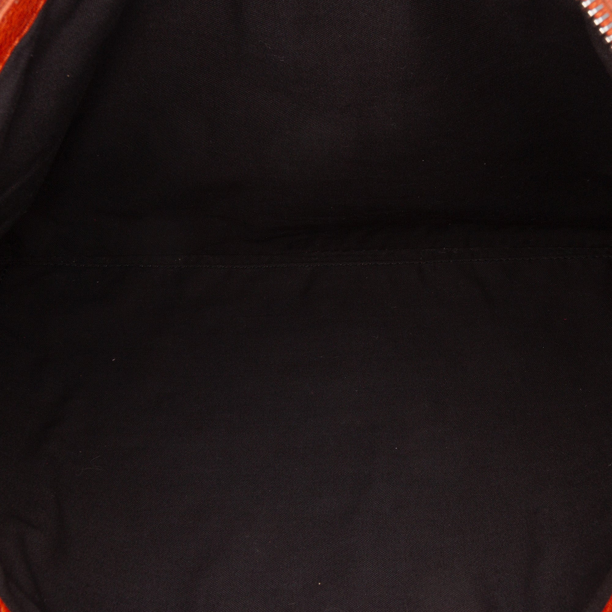 This clutch bag features a lambskin leather body, a top zip closure, and an exterior front zip pocket. Retail Price: 790.00