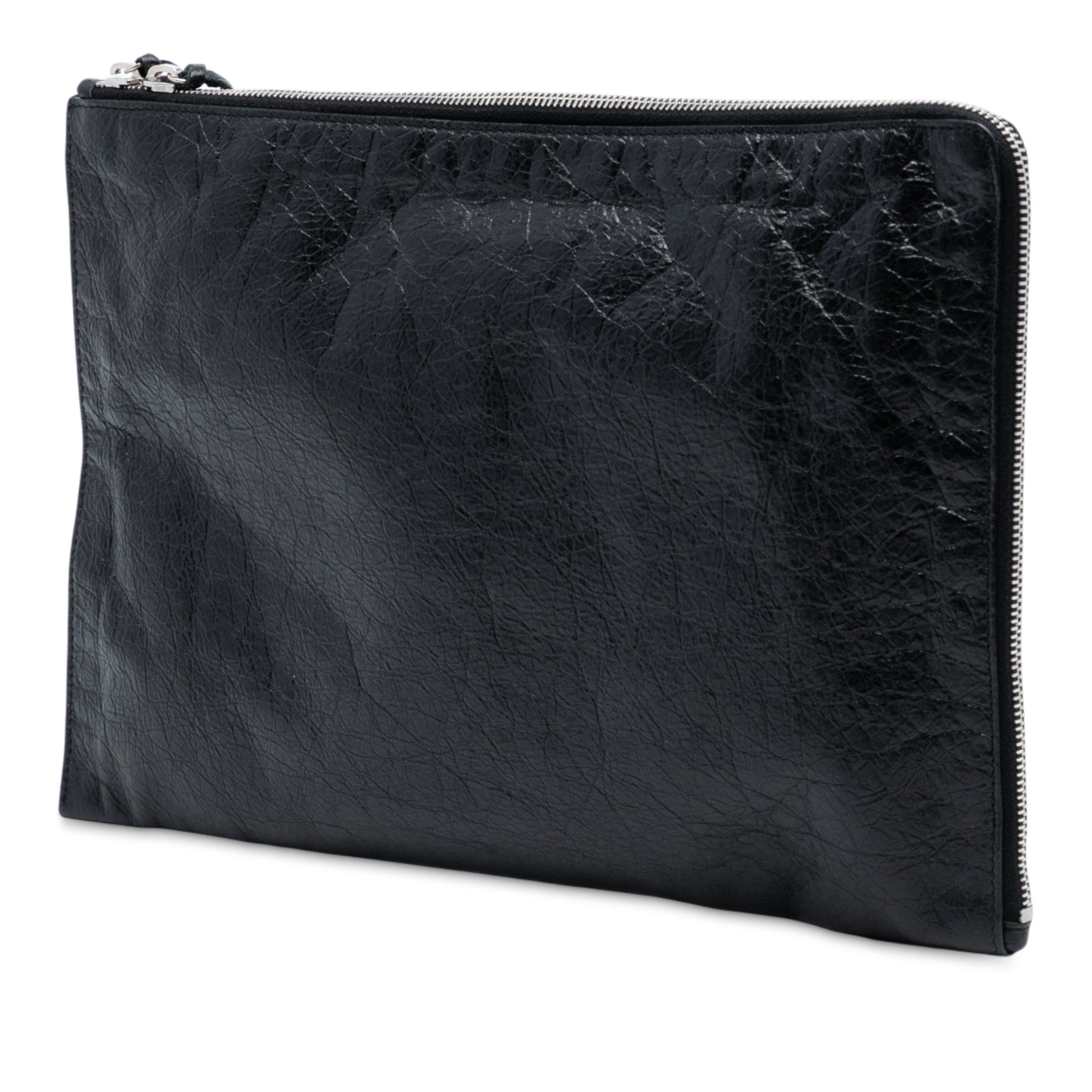 Balenciaga Lambskin Motocross Classic Zip Around Flat Clutch