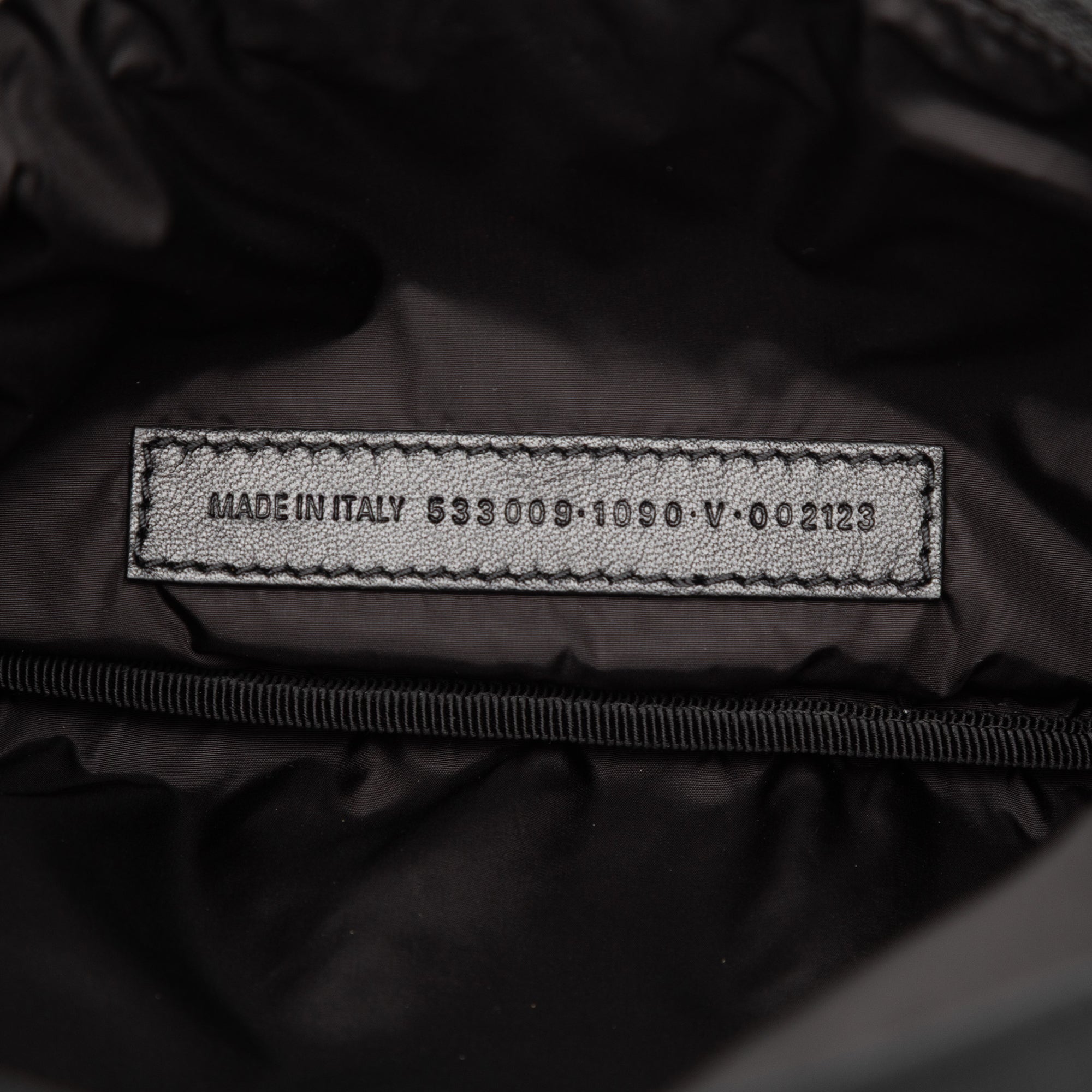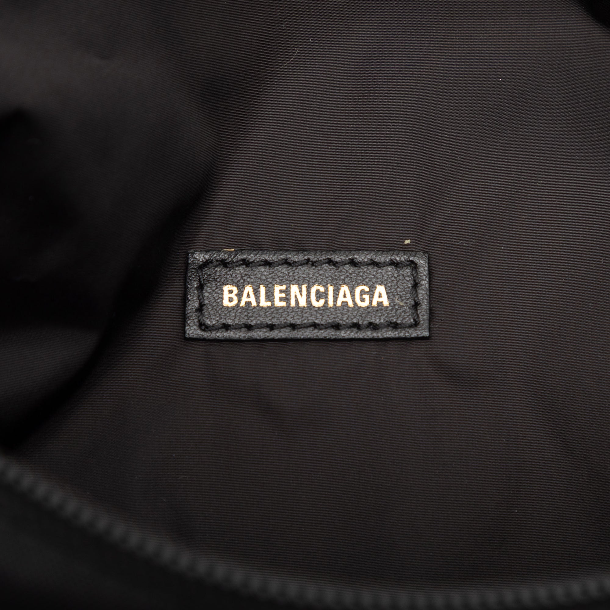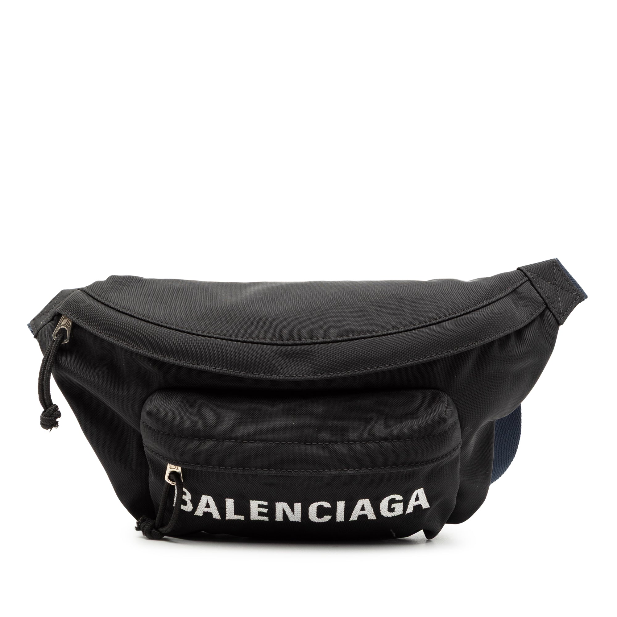 This belt bag features a nylon body, a flat waist strap with buckle closure, a top zip closure, and an exterior front zip pocket. Retail Price: 850.00