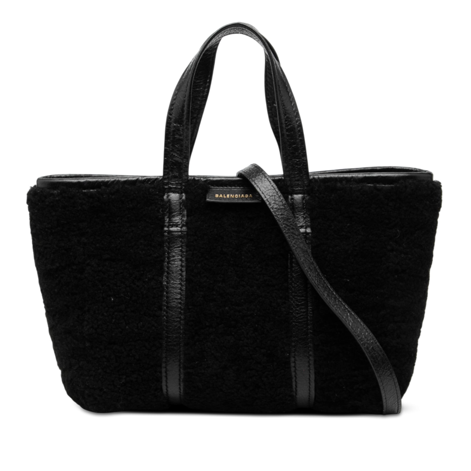 Balenciaga Small Shearling and Leather Barbes East West Shopper Tote