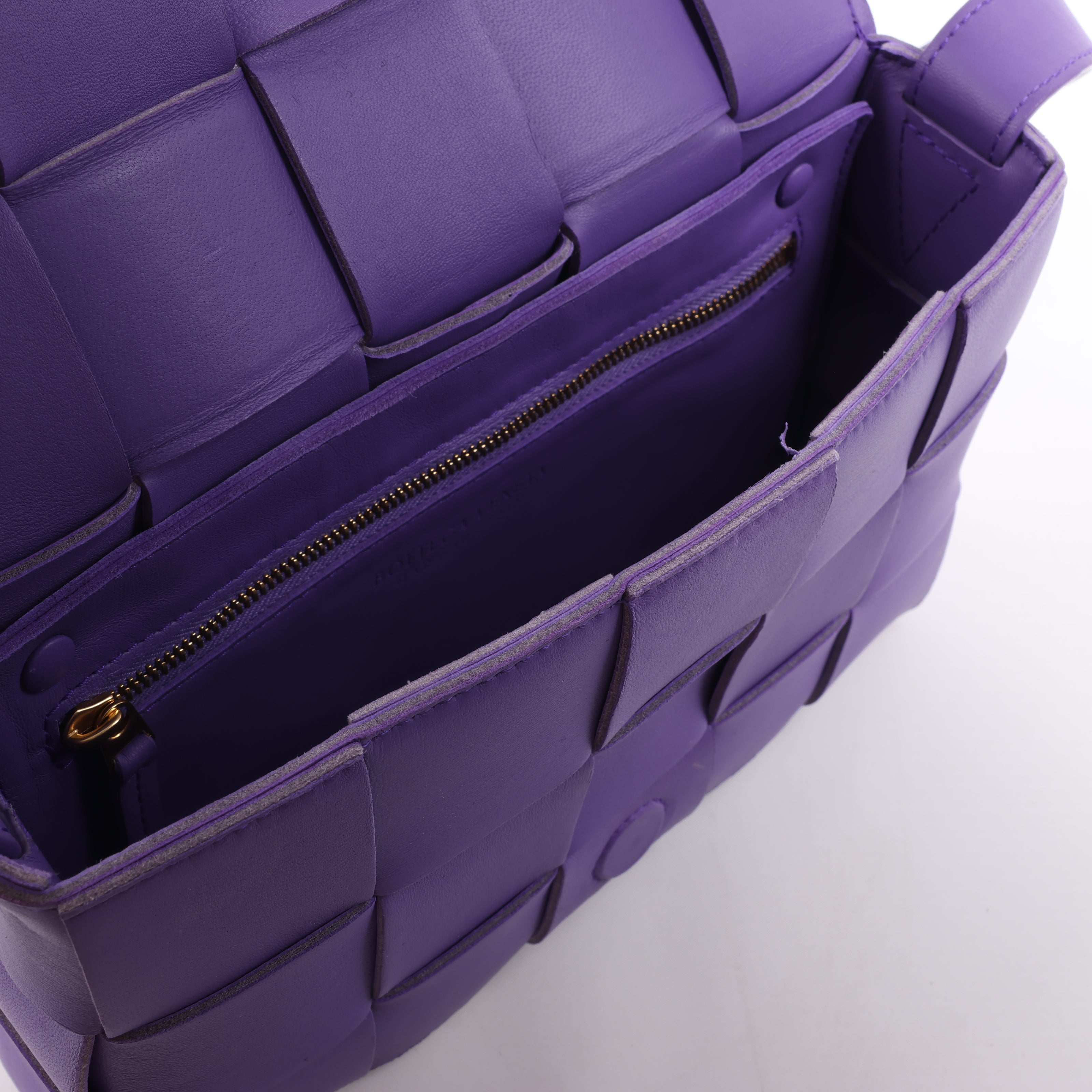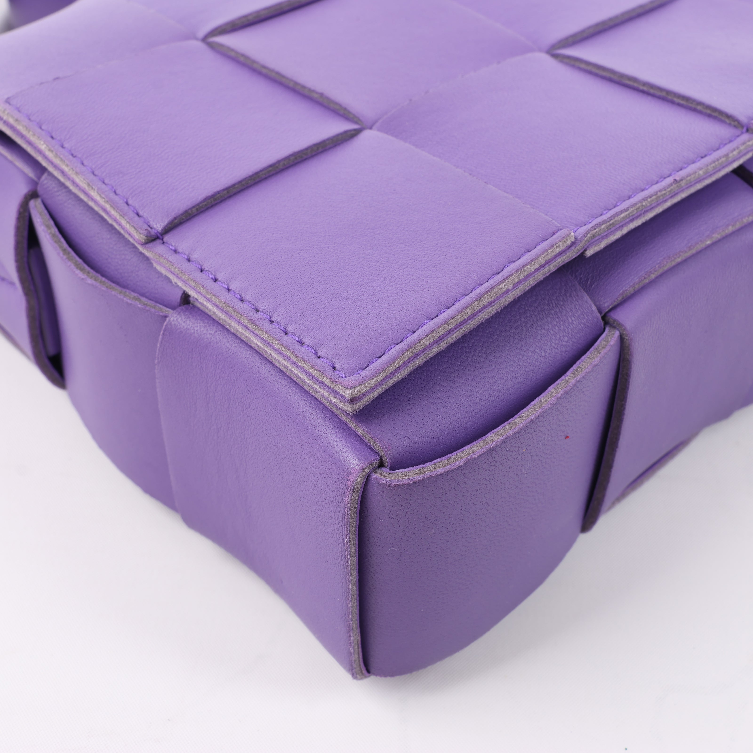 Brand: Bottega VenetaModel: Cassette Size: -Width: 22.5 cmHeight: 14 cmExterior Condition: ExcellentInterior Condition: ExcellentCondition Details: The exterior leather is clean and beautiful. The strap is in good condition. The interior is clean and in great condition.Colour: PurpleInterior Colour: PurpleHardware Colour: GoldMaterial: LeatherComes With: Dustbag