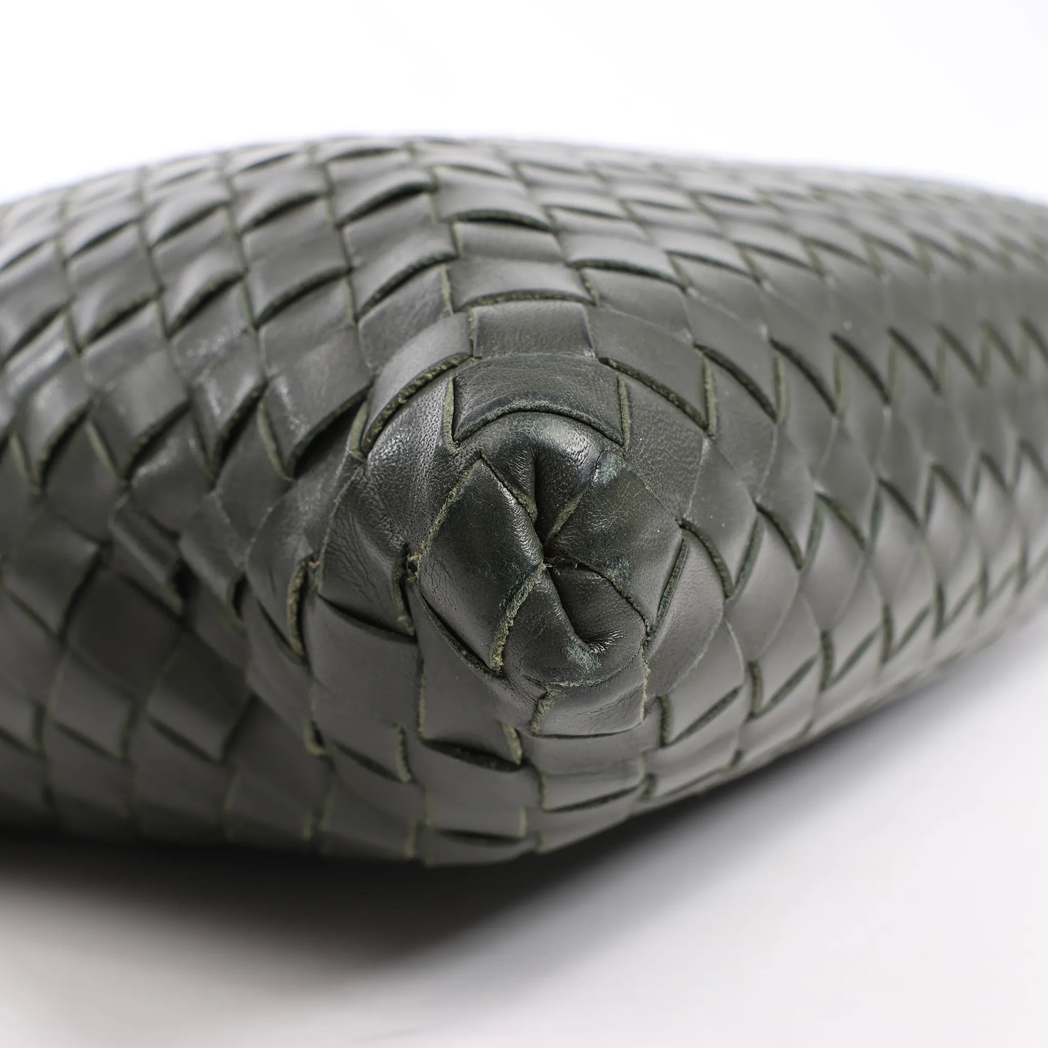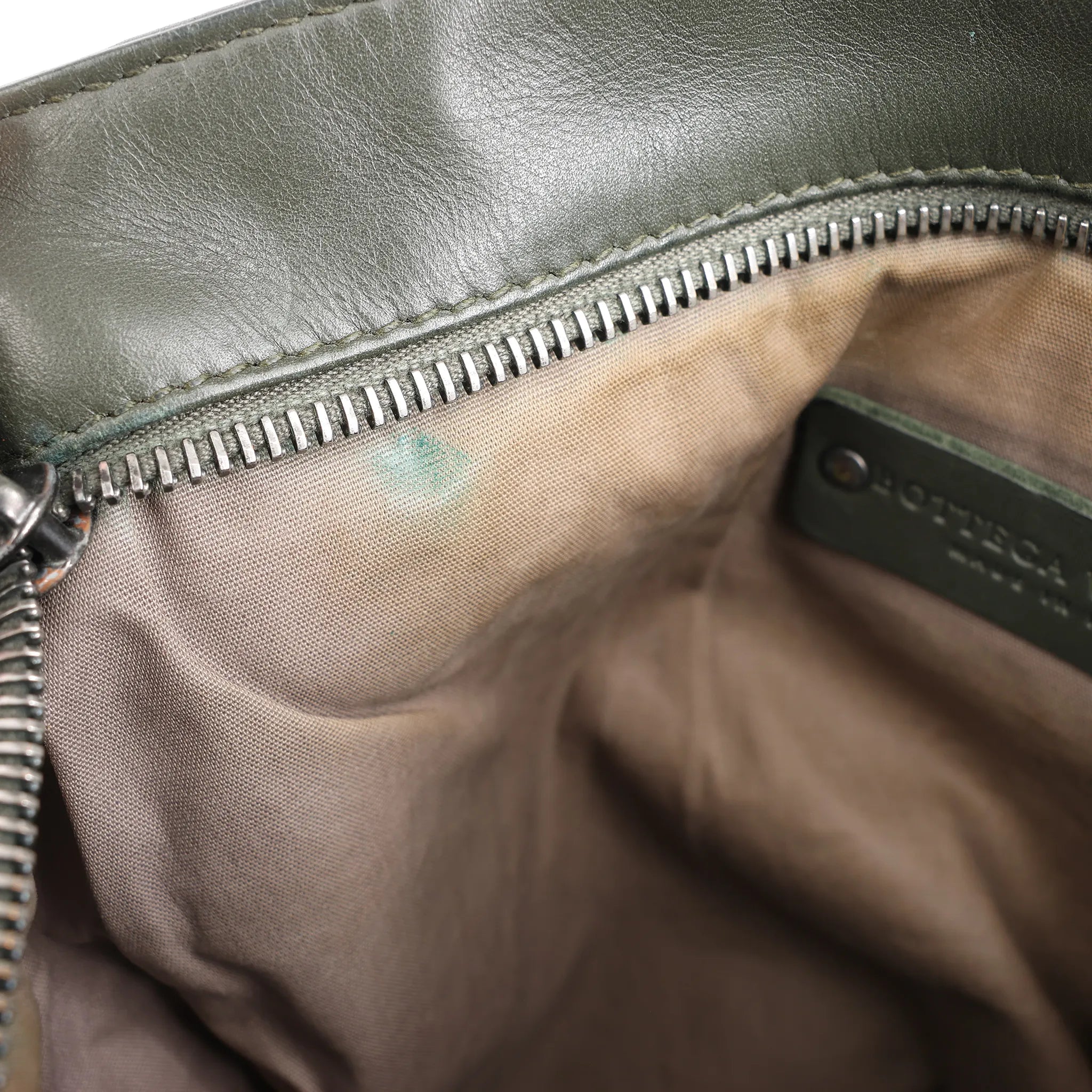 Brand: Bottega Veneta Model: - Size: -Width: 25.5 cmHeight: 26 cmExterior Condition: ExcellentInterior Condition: ExcellentCondition Details: The exterior leather is clean and beautiful in great condition. The strap is in good condition. The hardware is crisp with scratches. The interior is in excellent condition, except one green stain and some discoloration.Colour: GreenInterior Colour: TaupeHardware Colour: Dark SilverMaterial: LeatherComes With: Shoulder strap