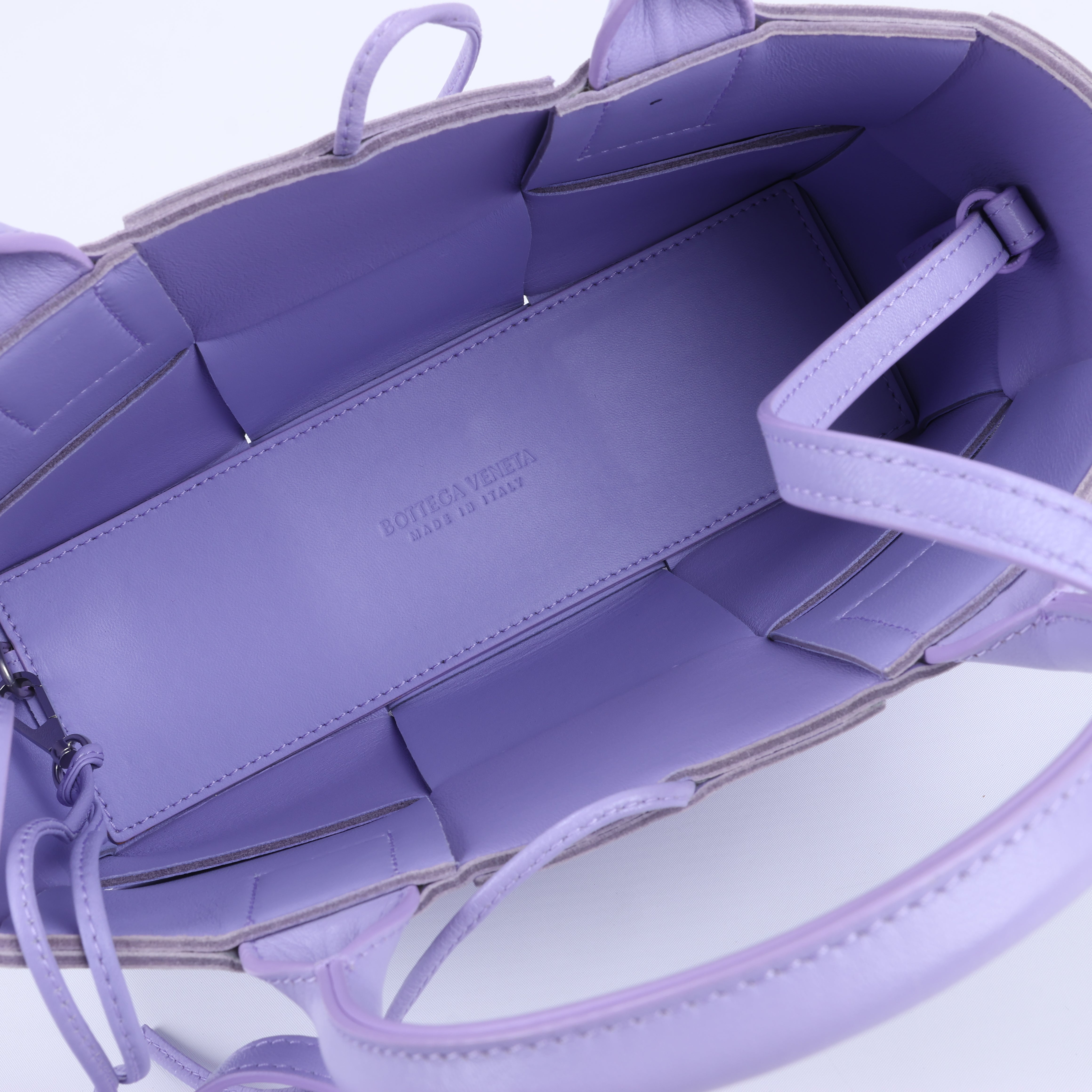 Brand: Bottega VenetaModel: ArcoSize: SmallWidth: 25 cmHeight: 16 cmExterior Condition: ExcellentInterior Condition: ExcellentCondition Details: The exterior leather is clean and beautiful in excellent condition with some seamless scratches. The handles are clean and firm in good condition. The interior leather is clean and in great condition. Overall looks like new!Colour: PurpleInterior Colour: PurpleHardware Colour: SilverMaterial: LeatherComes With: Original dustbag, pouch, shoulder strap
