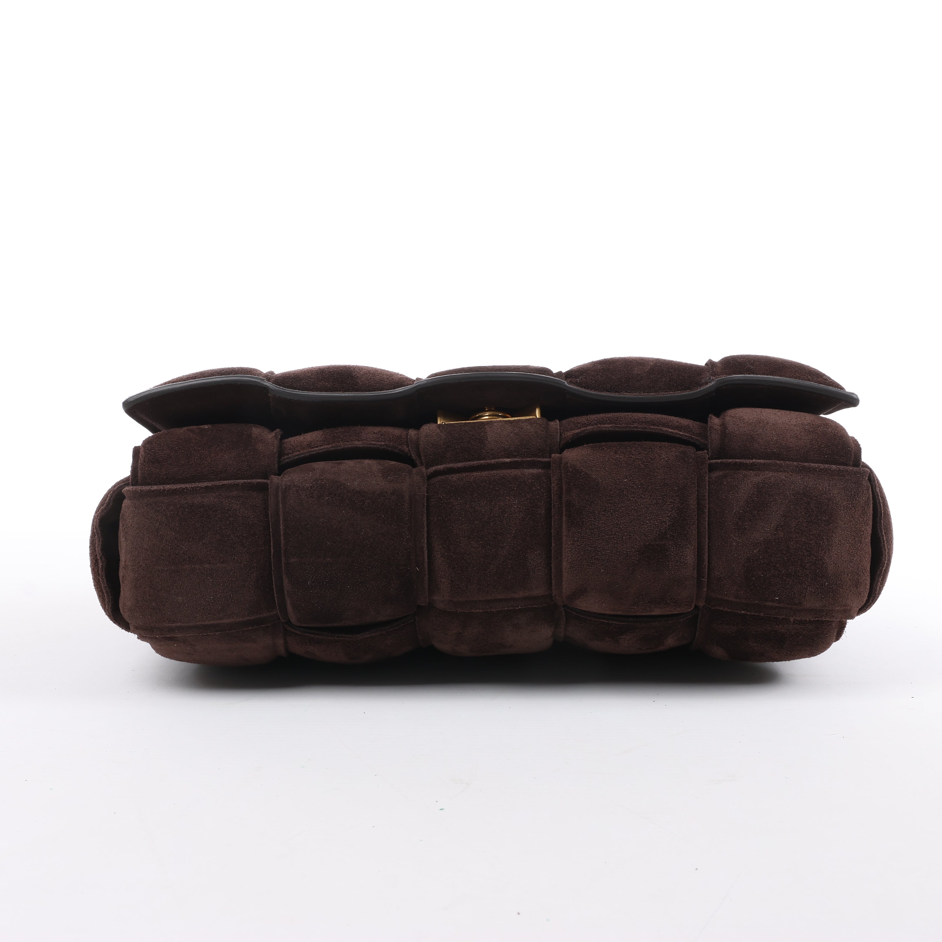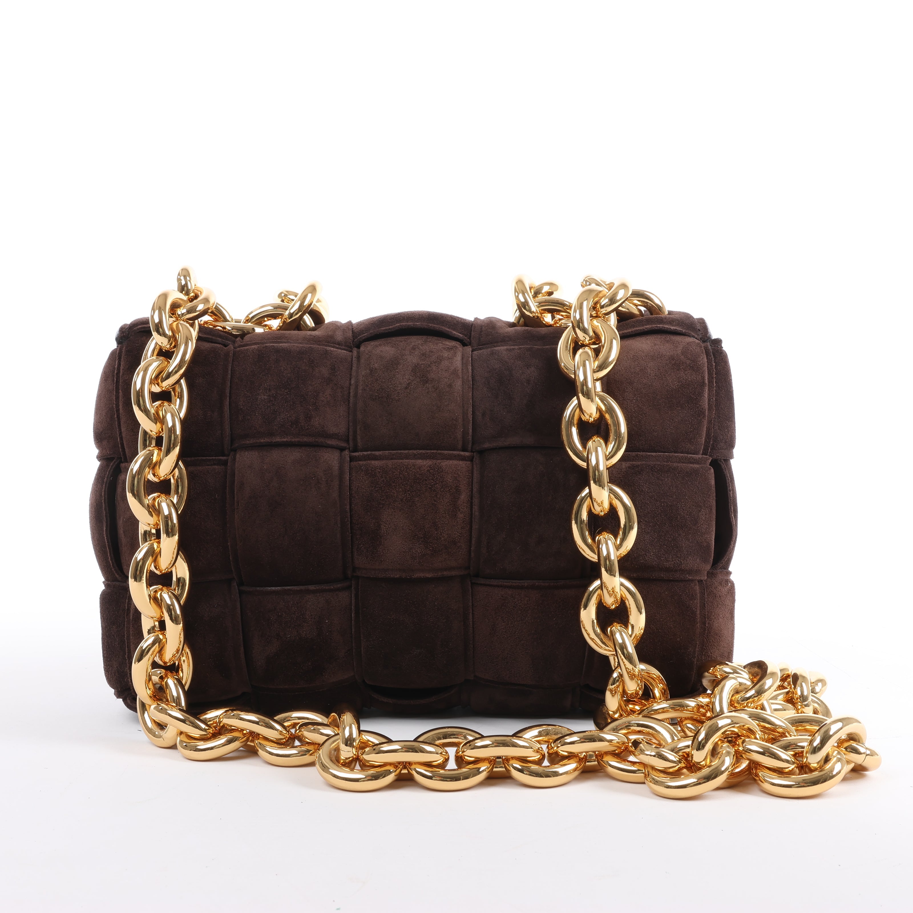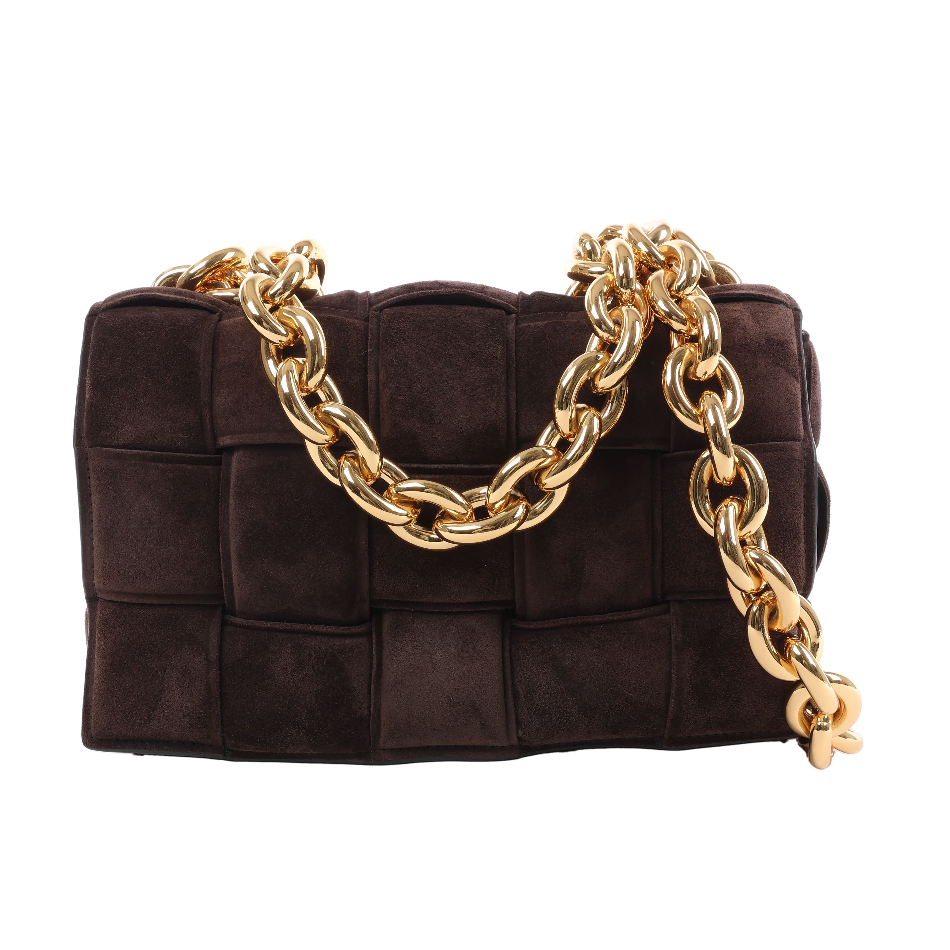 Bottega Veneta Bottega Veneta Padded Chain Cassette Maxi Intrecciato Suede Shoulder Bag in Brown