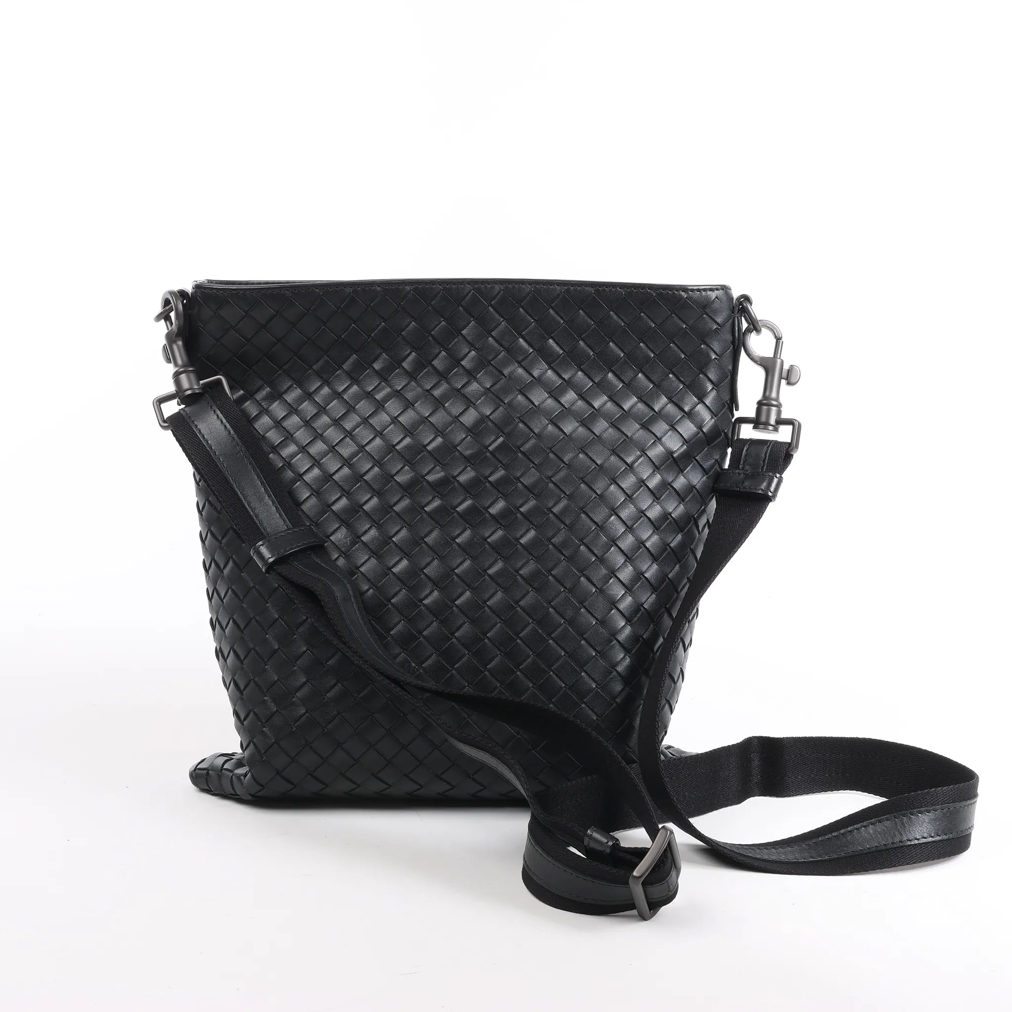 Bottega Veneta Bottega Veneta VN Intrecciato Leather Crossbody Messenger Bag in Black