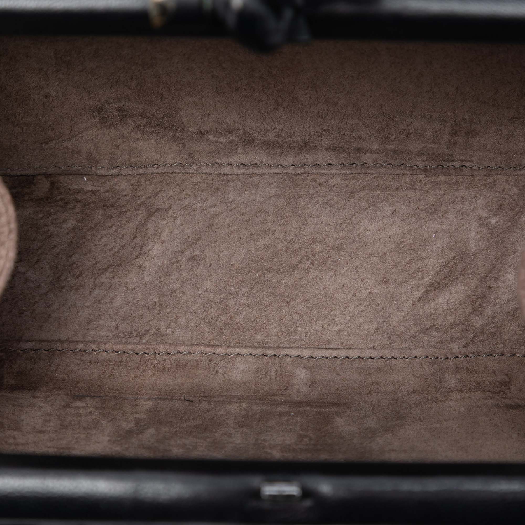 This clutch bag features a woven canvas and leather body, and a top frame with a knot clasp closure. Retail Price: 1495.00
