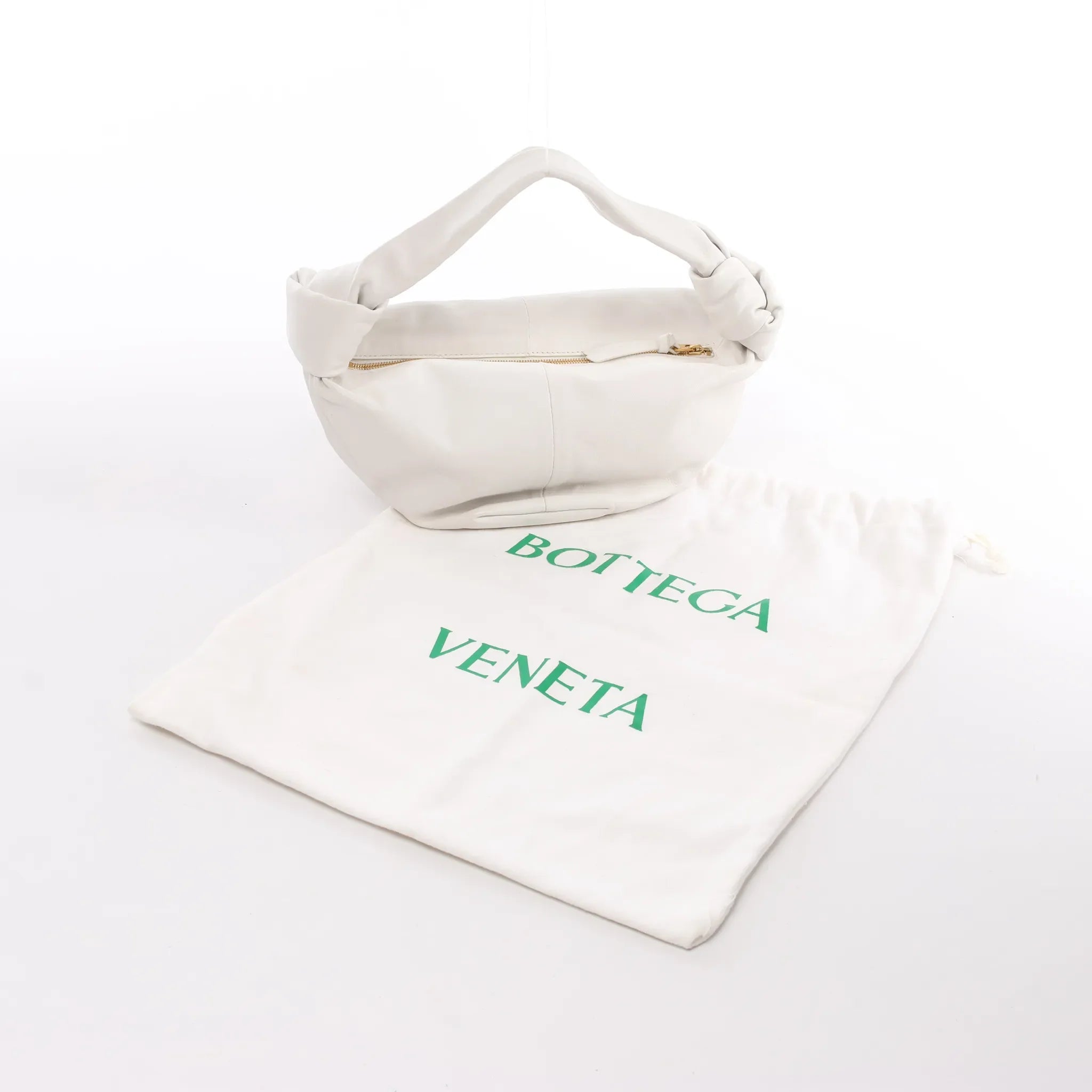 Brand: Bottega VenetaModel: Double KnotSize: MiniWidth: 15.5 cmHeight: 9 cmExterior Condition: ExcellentInterior Condition: ExcellentCondition Details: The exterior is clean and in great condition. The hardware is bright and crisp. The handle is firm. The interior ir clean and in very good condition. Overall the bag looks like NEW!Colour: WhiteInterior Colour: WhiteHardware Colour: GoldMaterial: LeatherComes With: Dustbags