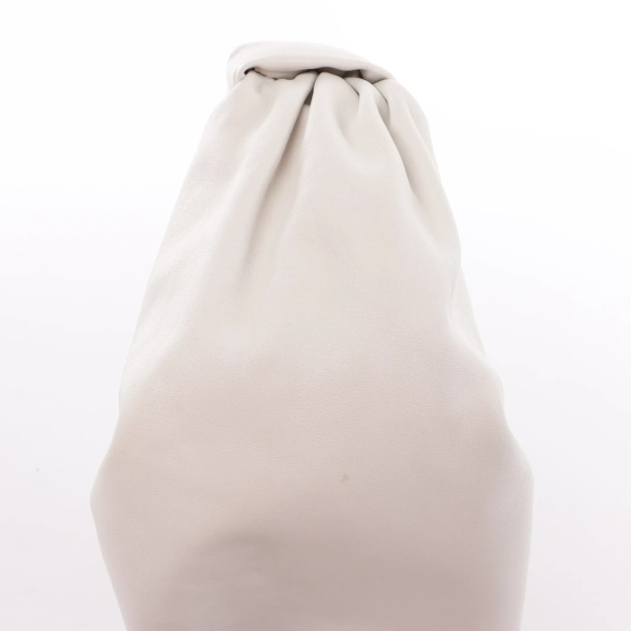 Bottega Veneta Double Knot Mini in white leather—an elevated, sculptural handbag with signature knotted handle details and a soft, slouchy silhouette that adds instant polish from day to night.
