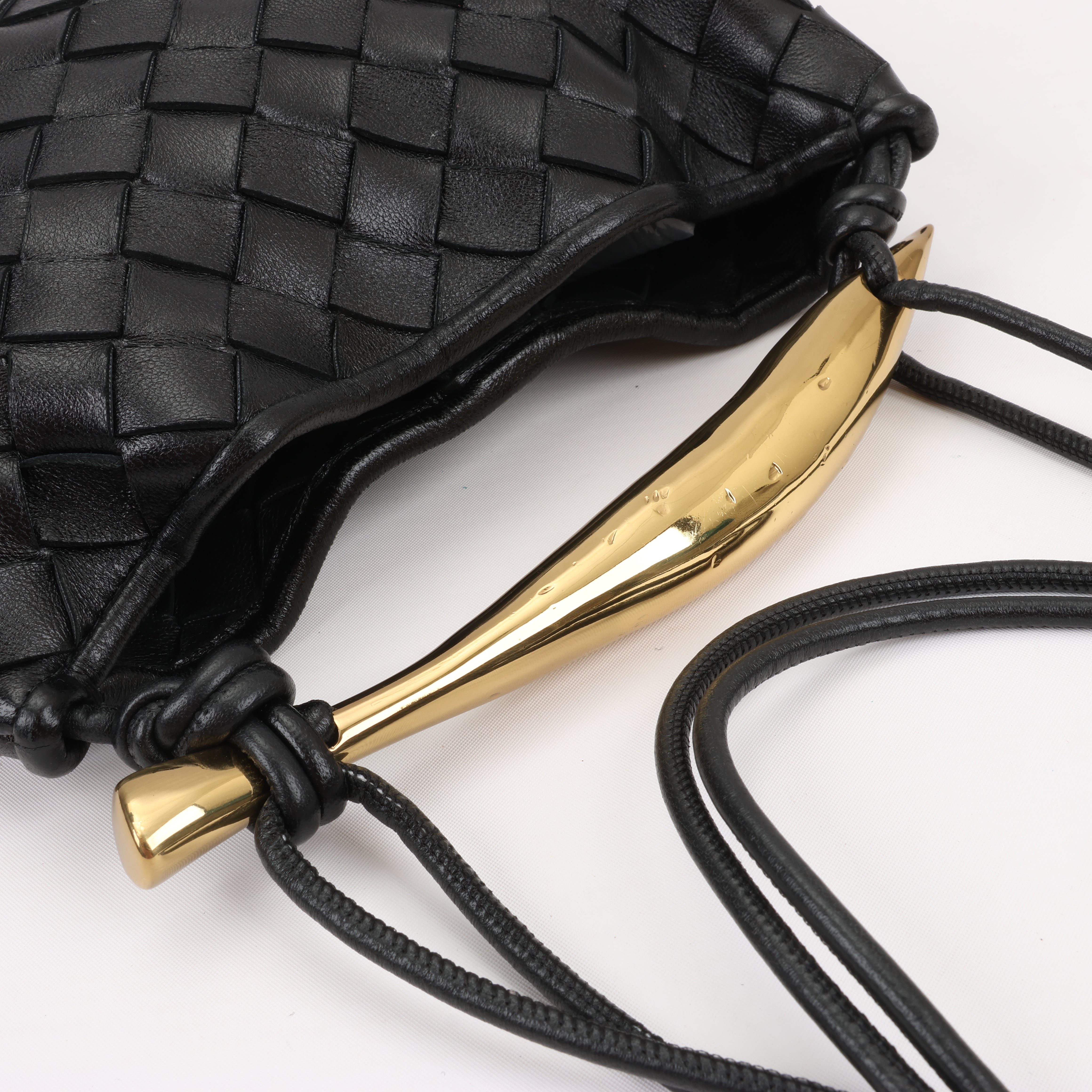 Bottega Veneta Intrecciato Sardines Leather Shoulder Bag in Black