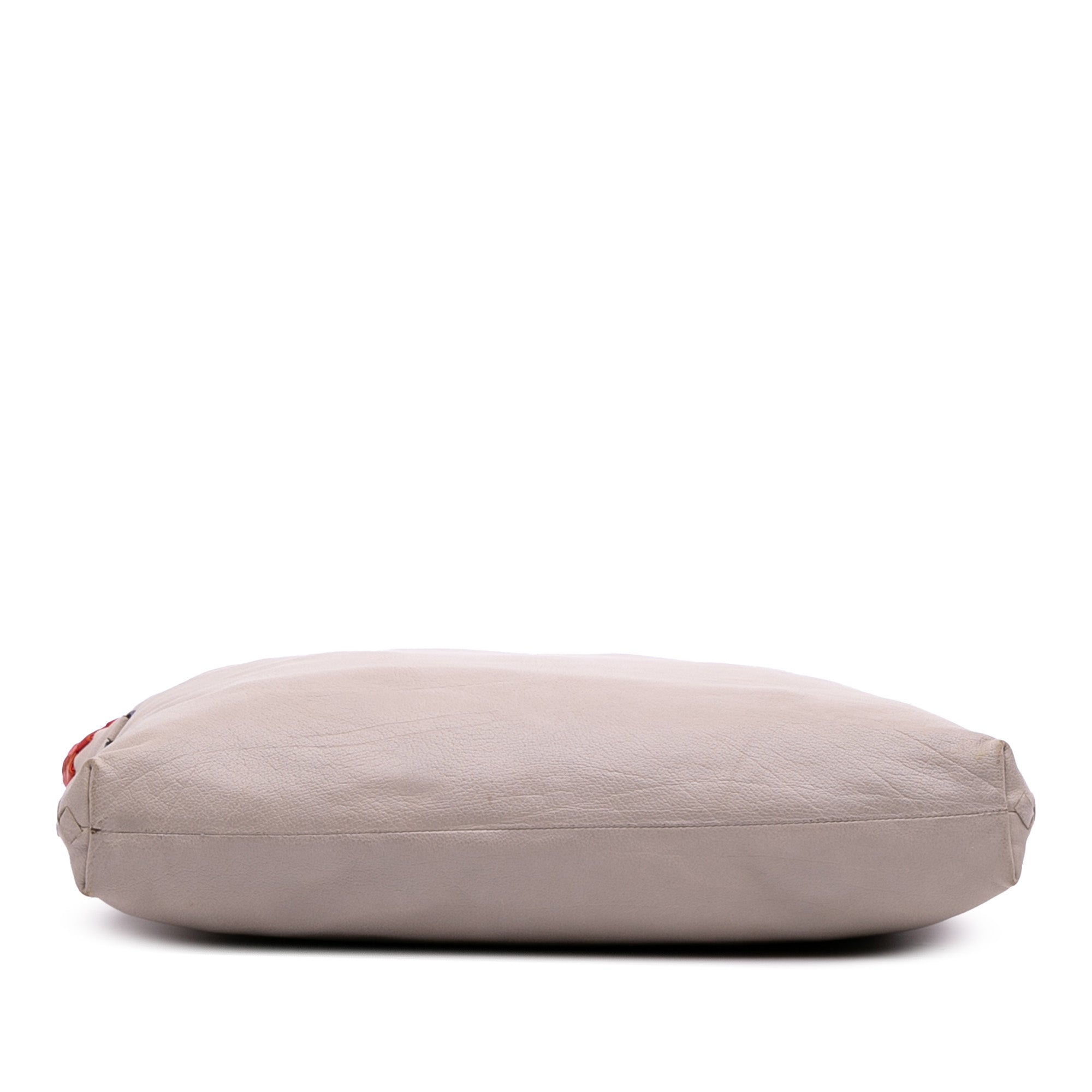 This satchel features a leather body, flat leather handles, a detachable leather strap, an open top, and interior zip and slip pockets. Retail Price: 598.00