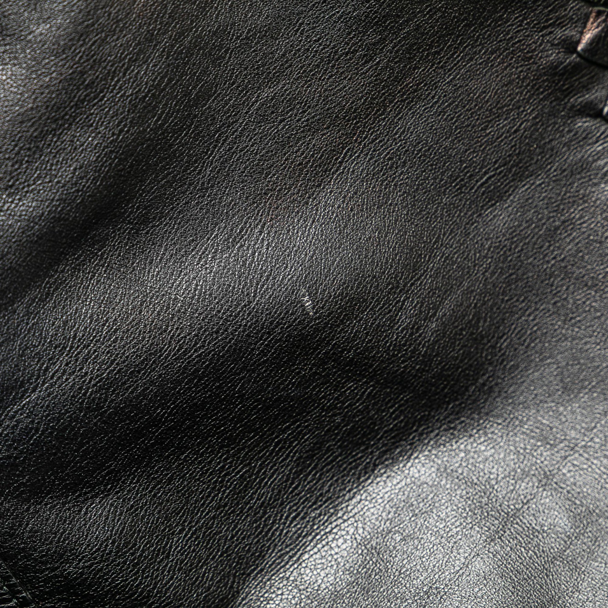 This crossbody bag features a leather body with woven trim, an adjustable flat leather shoulder strap, a top zip closure, and interior zip and slip pockets. Retail Price: 1850.00
