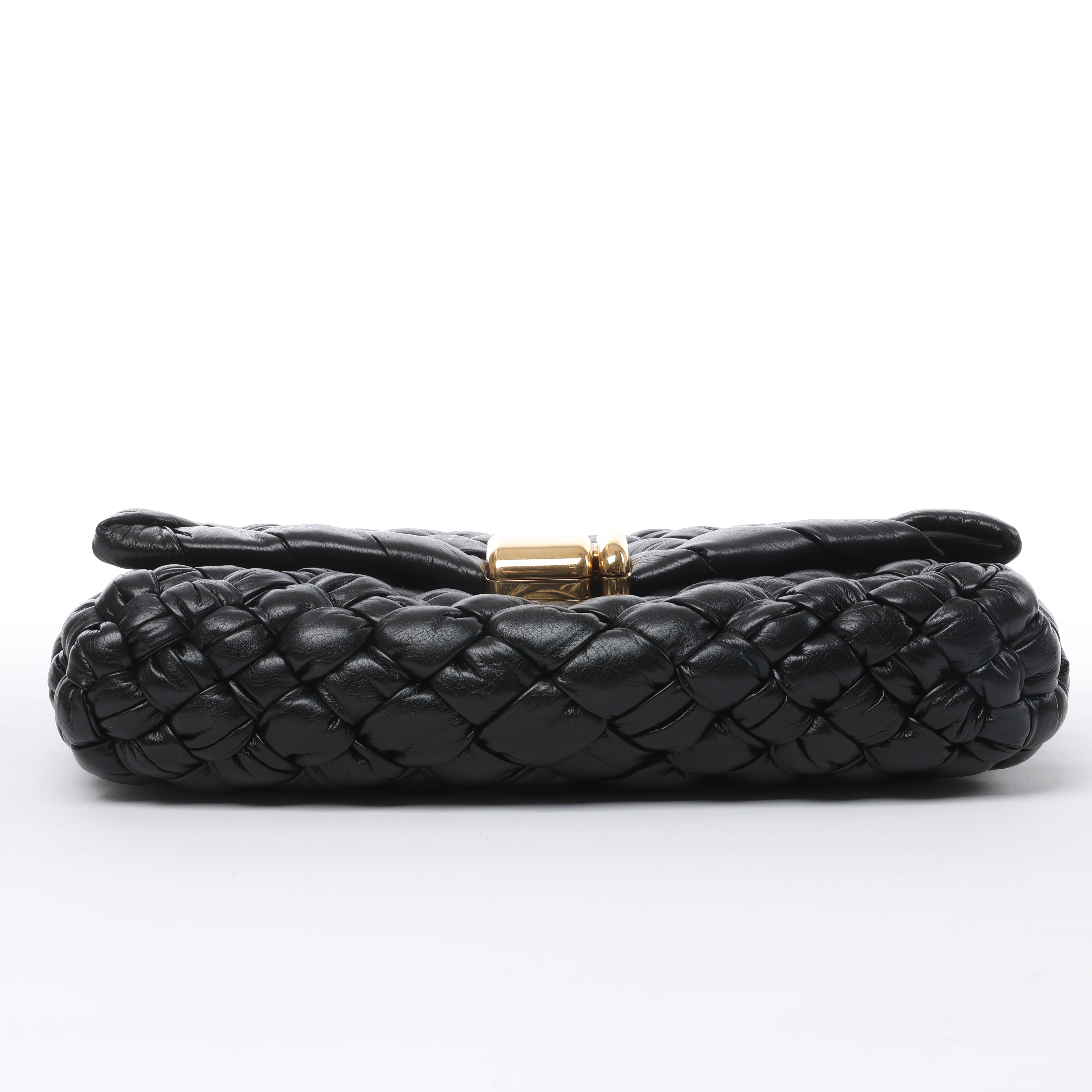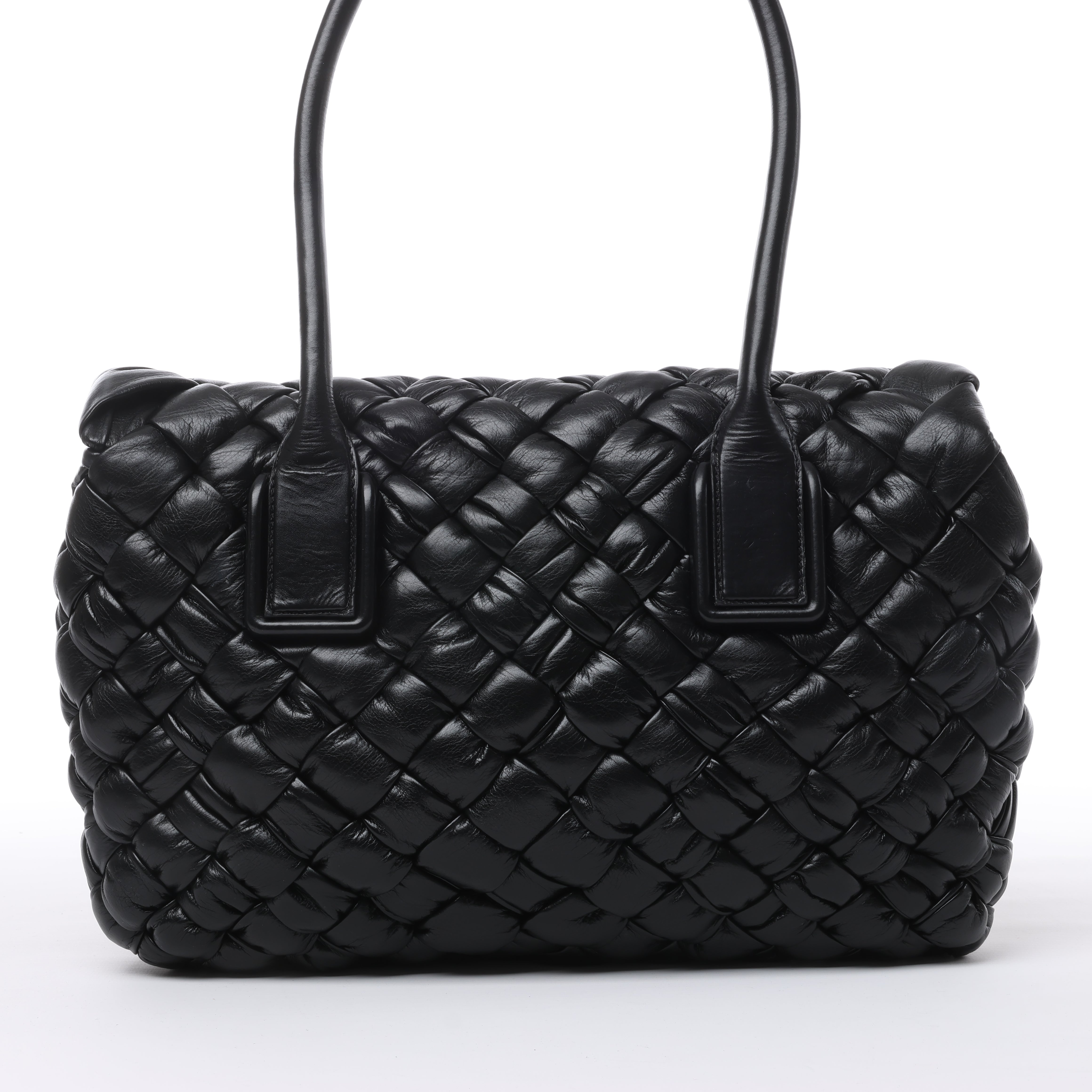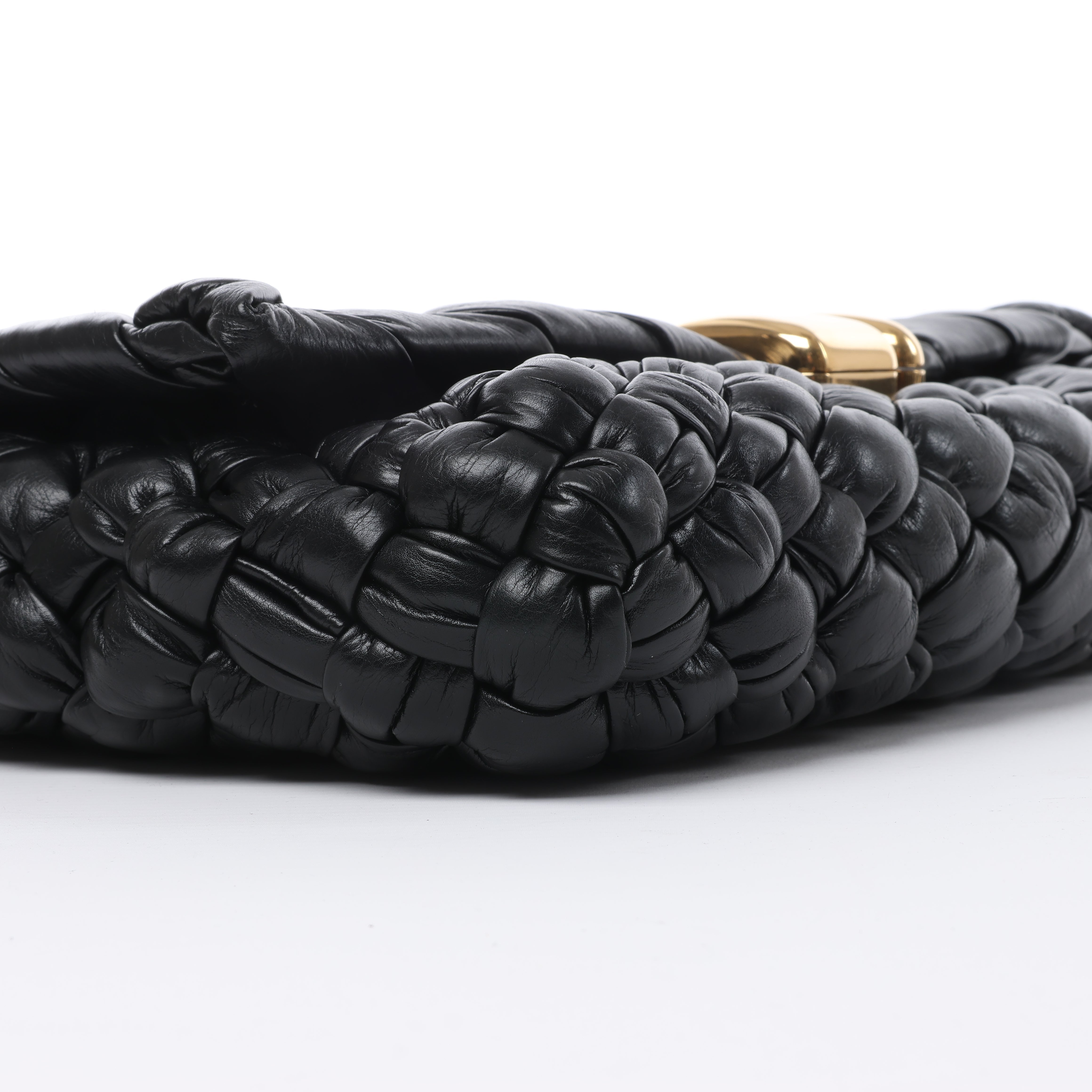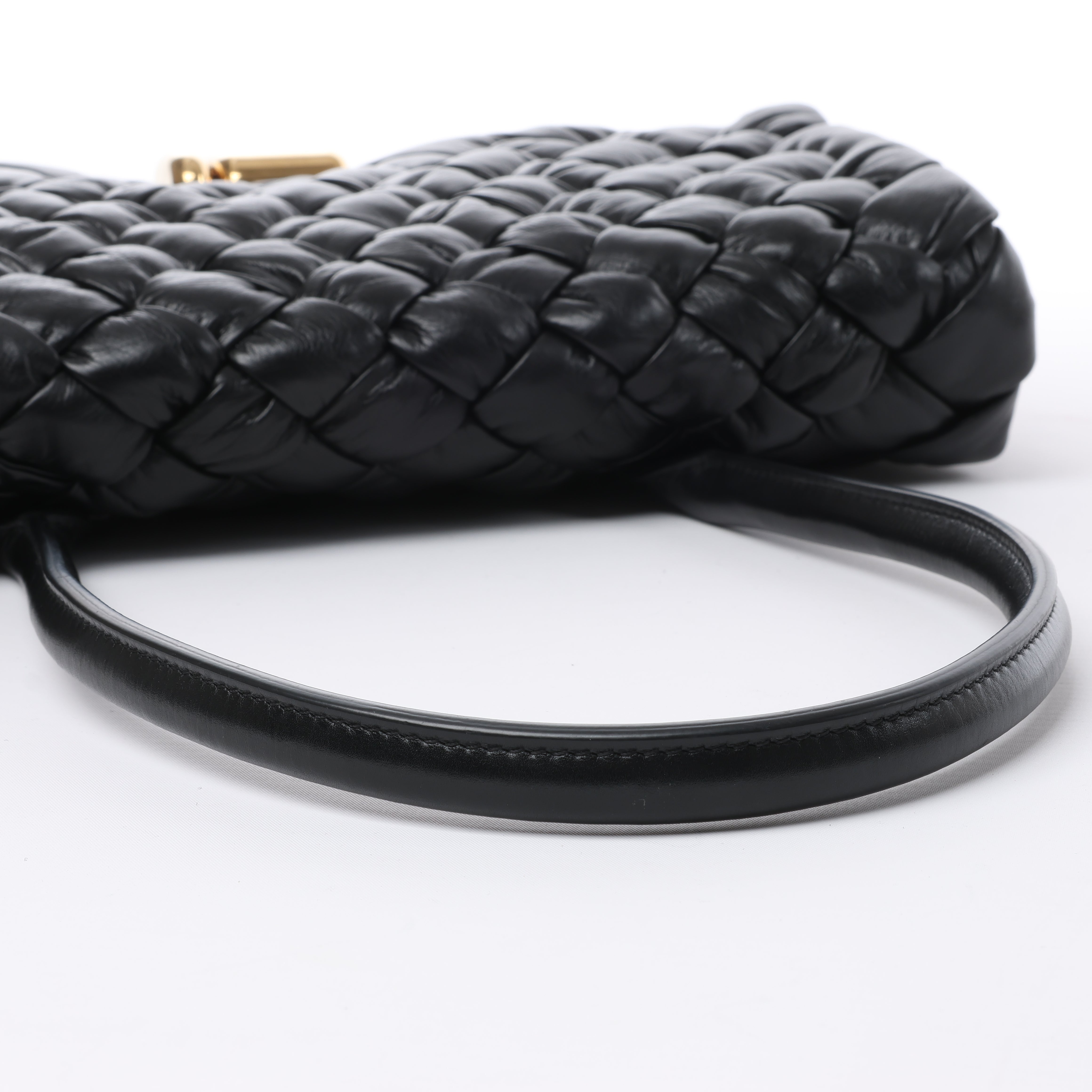 Bottega Veneta Leather Woven Rumple Desiree Shoulder Bag in Black