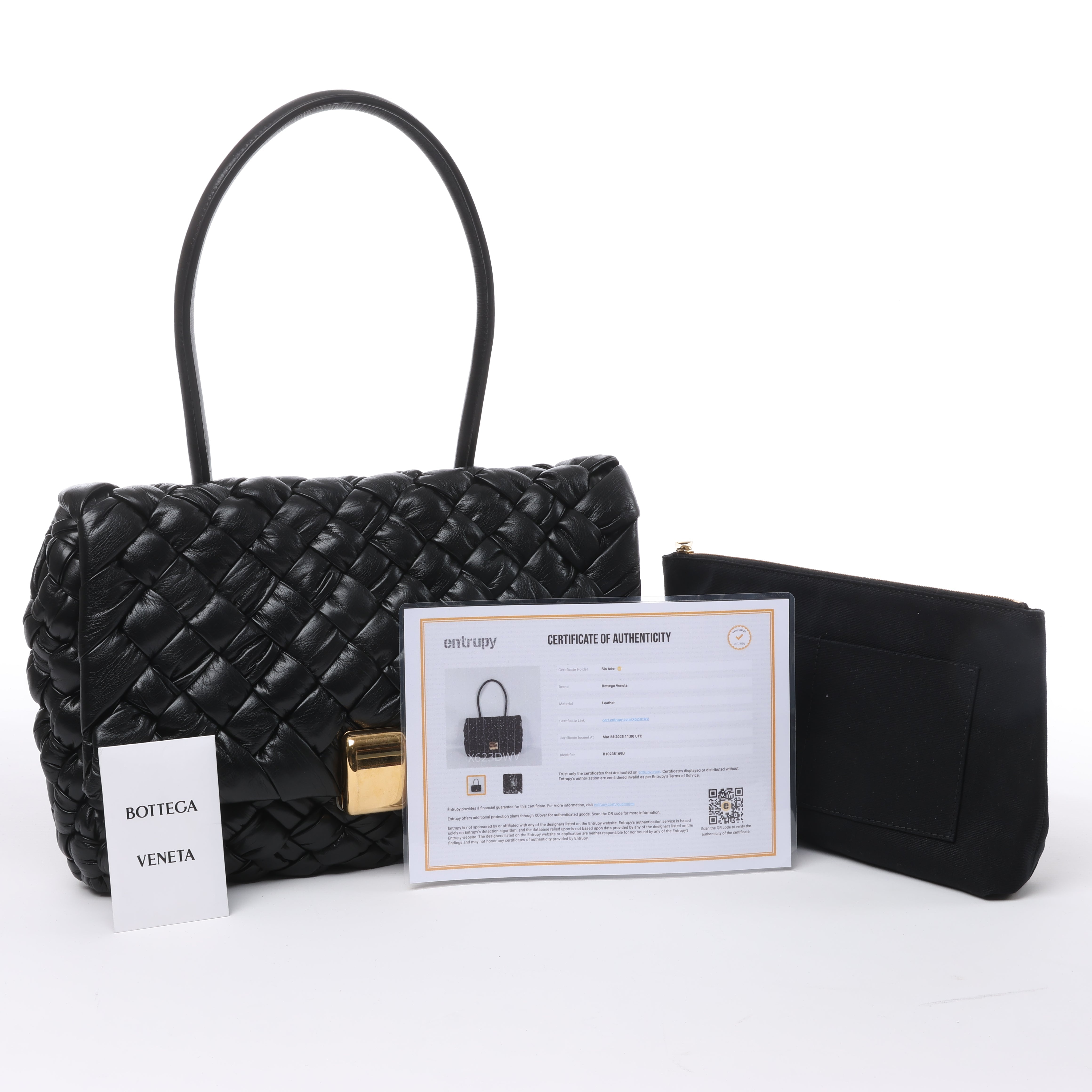 Brand: Bottega VenetaModel: Rumple DesireeSize: -Width: 31 cmHeight: 24 cmExterior Condition: ExcellentInterior Condition: ExcellentCondition Details: The exterior leather is clean and beautiful in excellent condition. The handle is clean and firm. The hardware is bright and crisp with hairline scratches The pouch is in great condition. The interior leather lining is in very good condition.Colour: BlackInterior Colour: BlackHardware Colour: GoldMaterial: LeatherComes With: Pouch, Entrupy certificate