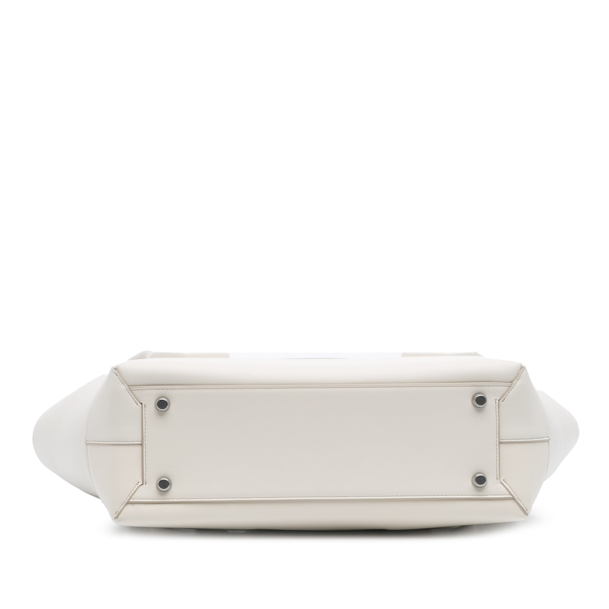 The Arco tote bag features a woven leather body, rolled handles, a front flap, and interior zip and slip pockets. Inclusion: Dust bag. Retail Price: 2500.00