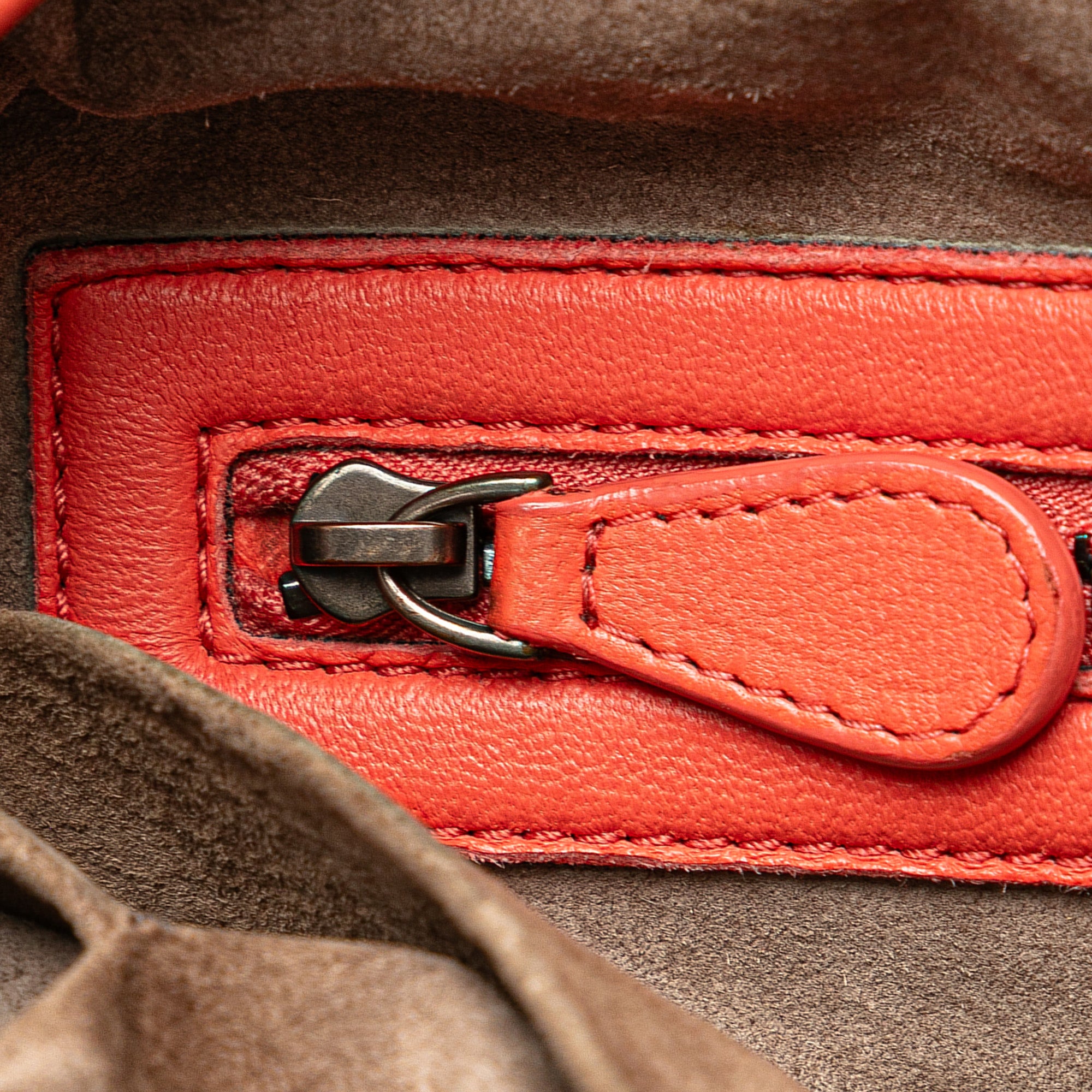 This hobo bag features a woven leather body, a flat leather handle, a top zip closure, and interior zip and slip pockets. Retail Price: 1890.00