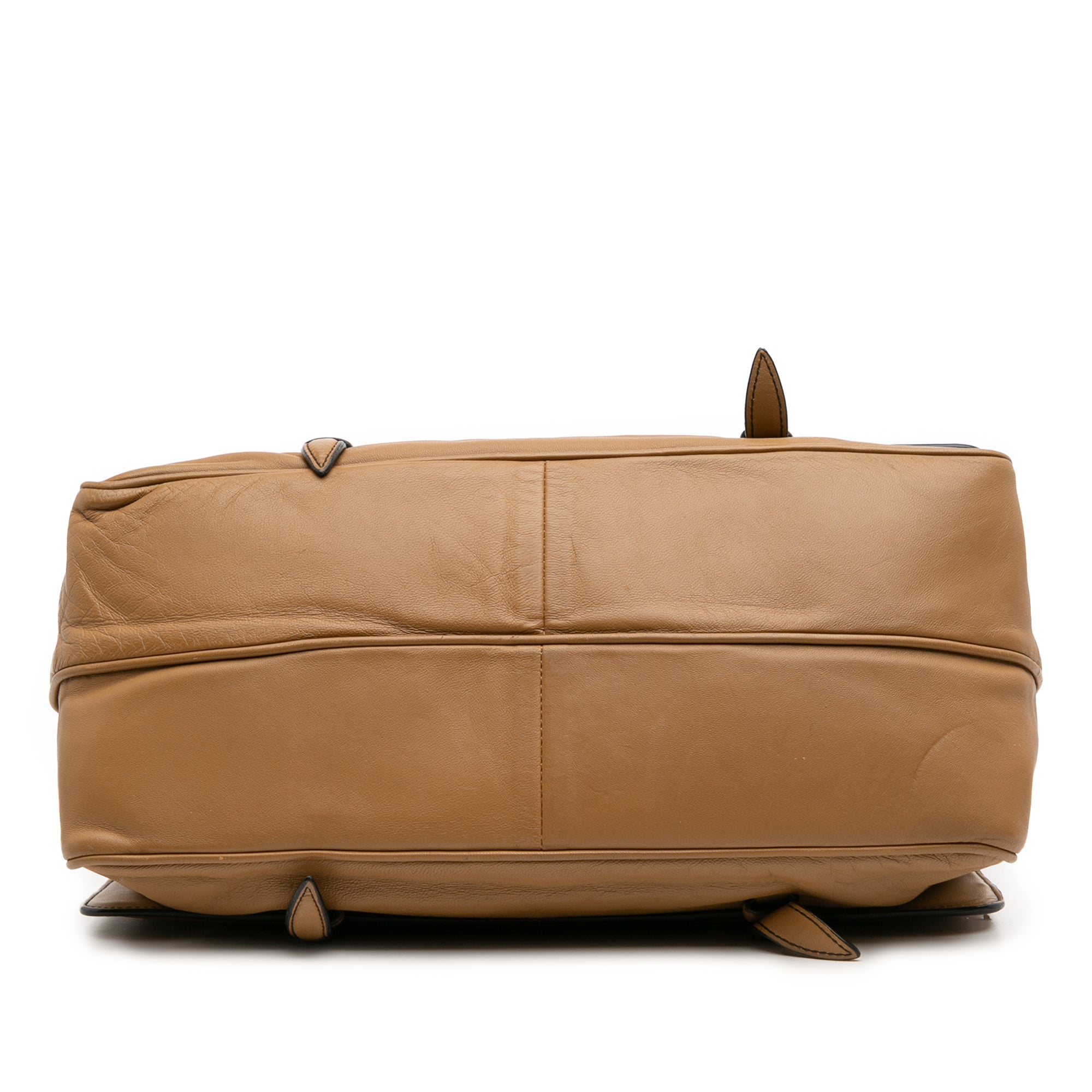 This satchel features a woven leather body, flat leather handles, a flat leather shoulder strap, a top magnetic closure, exterior flap pockets, and interior zip and slip pockets. Retail Price: 4350.00