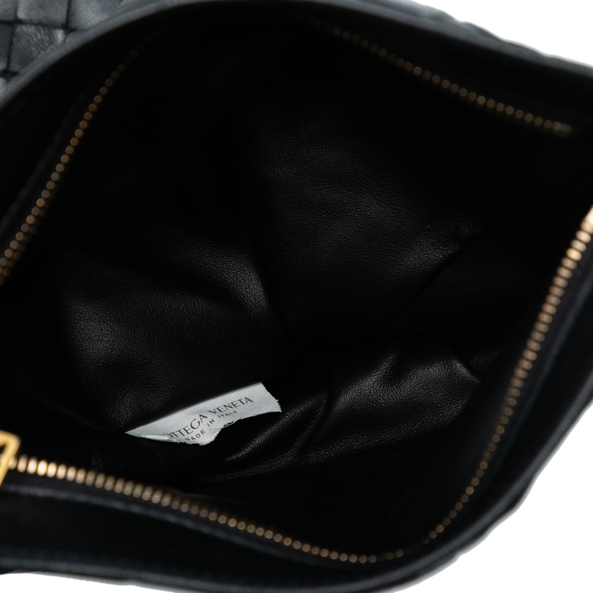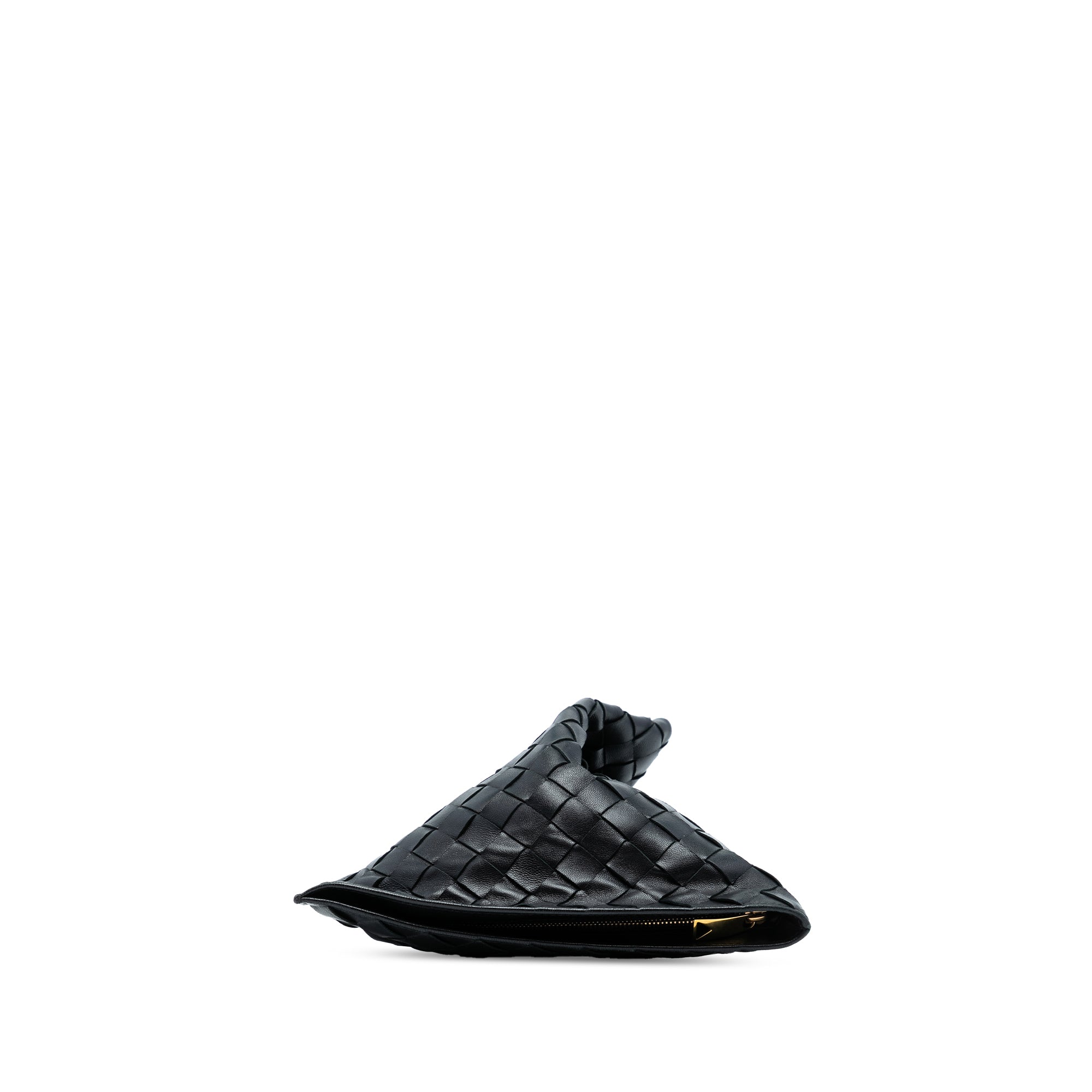 The BV Twist handbag features a woven nappa leather body, a flat handle, and a bottom zip closure. Retail Price: 1540.00