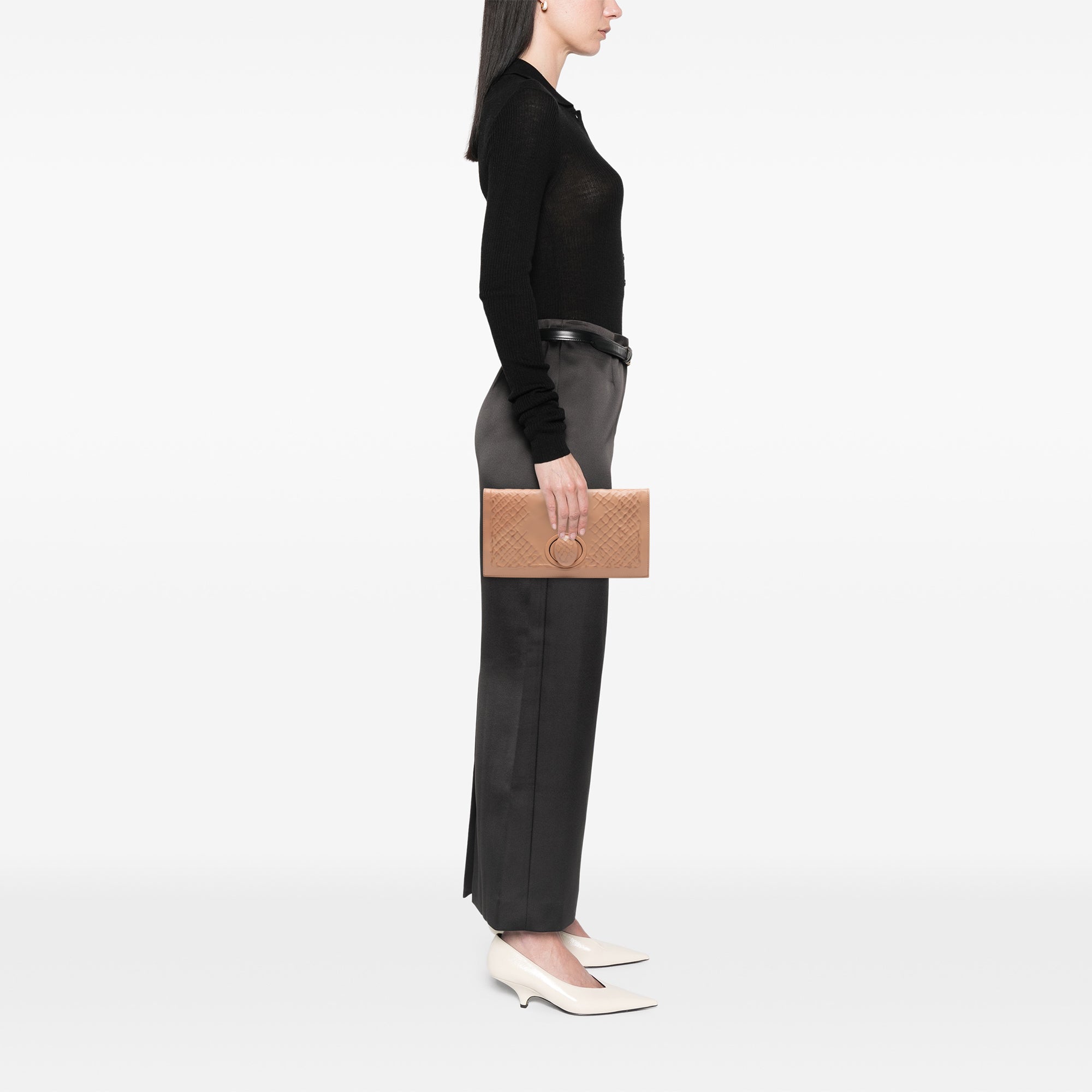 Bottega Veneta Nappa Embossed Intrecciato Turnlock Clutch