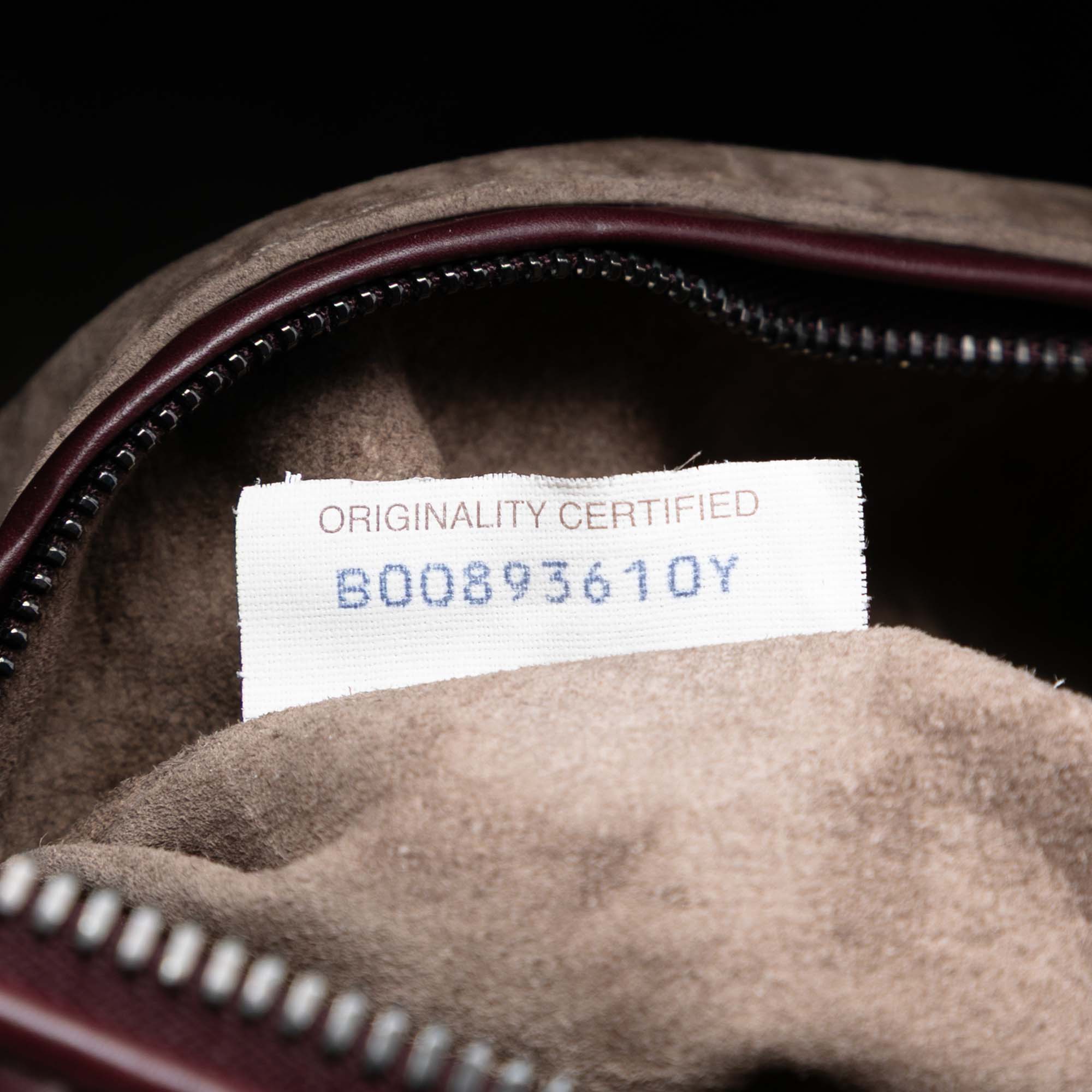 This boston bag features a woven leather body, rolled leather handles, a top zip closure, and interior zip and slip pockets. Retail Price: 1600.00