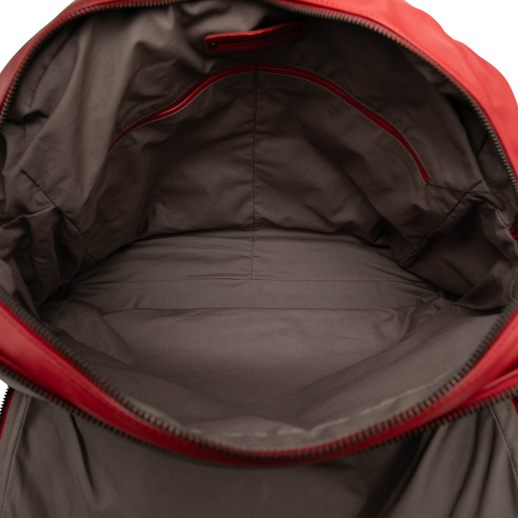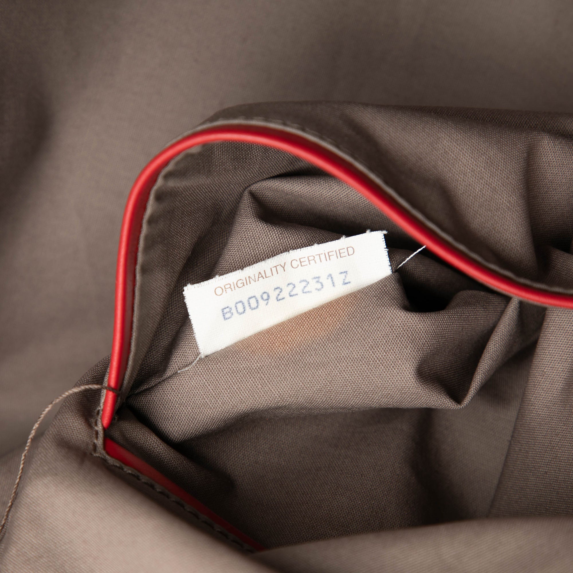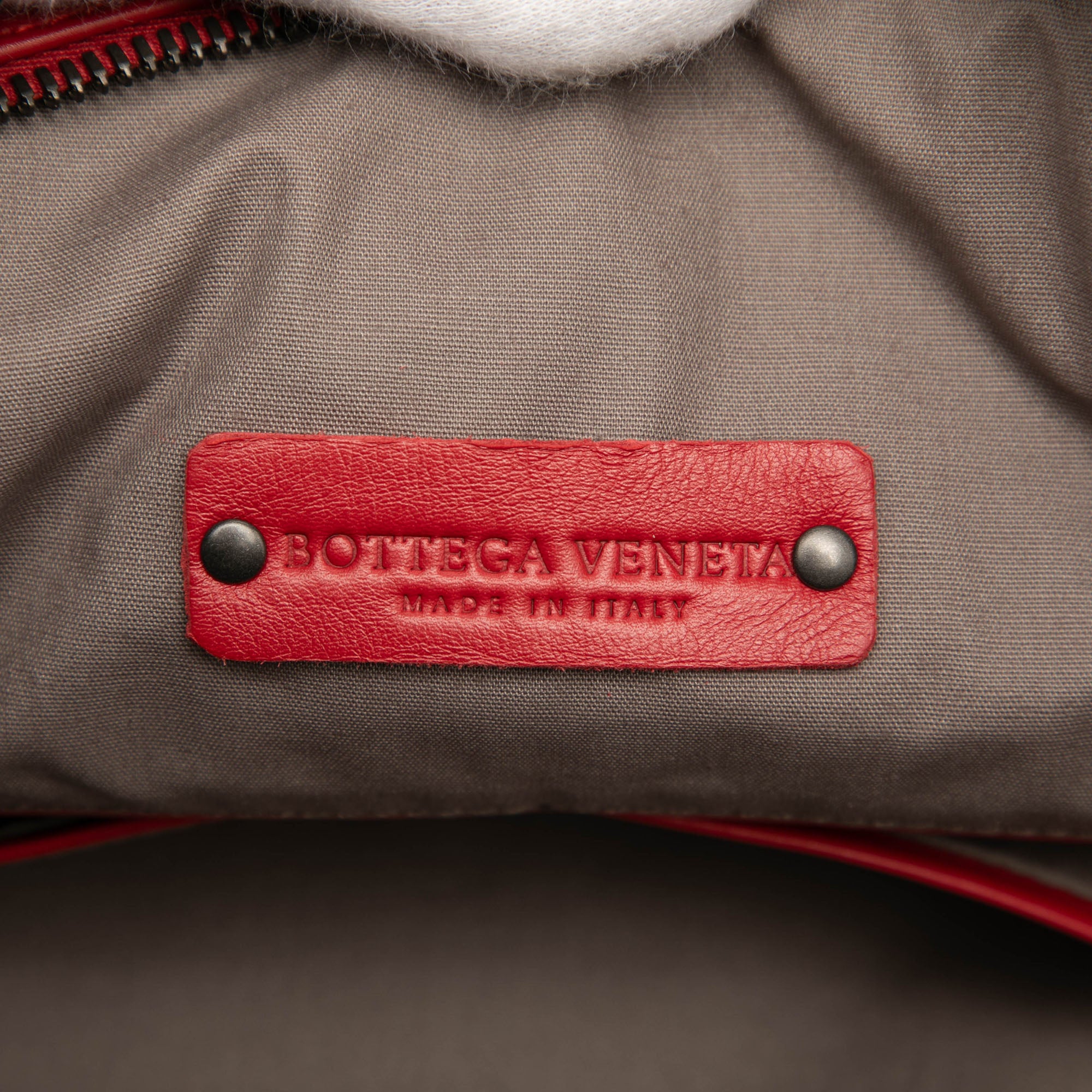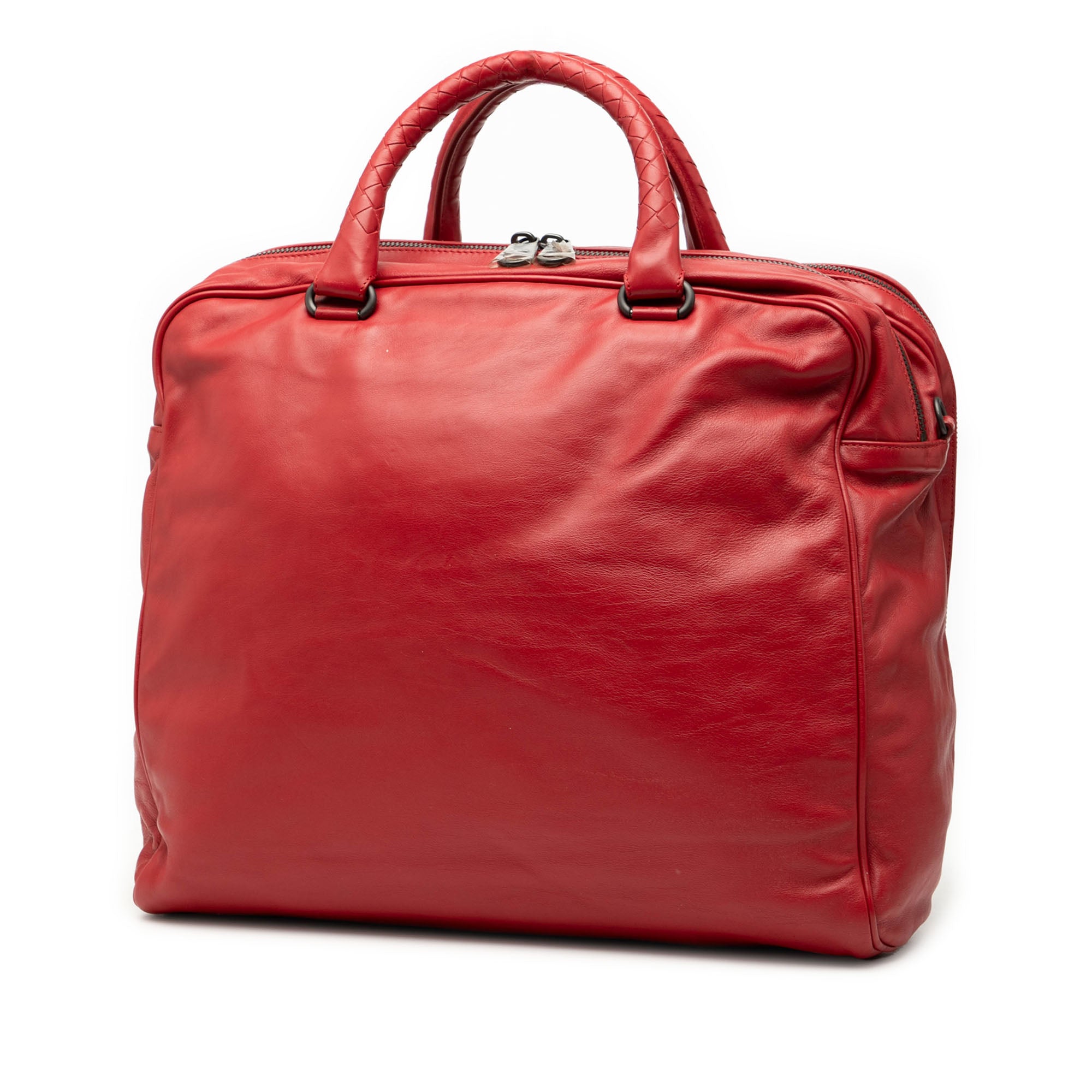 This business bag features a woven nappa leather body, rolled leather handles, a detachable flat strap, a top zip closure, an exterior front zip compartment, and interior slip pockets. Retail Price: 3570.00