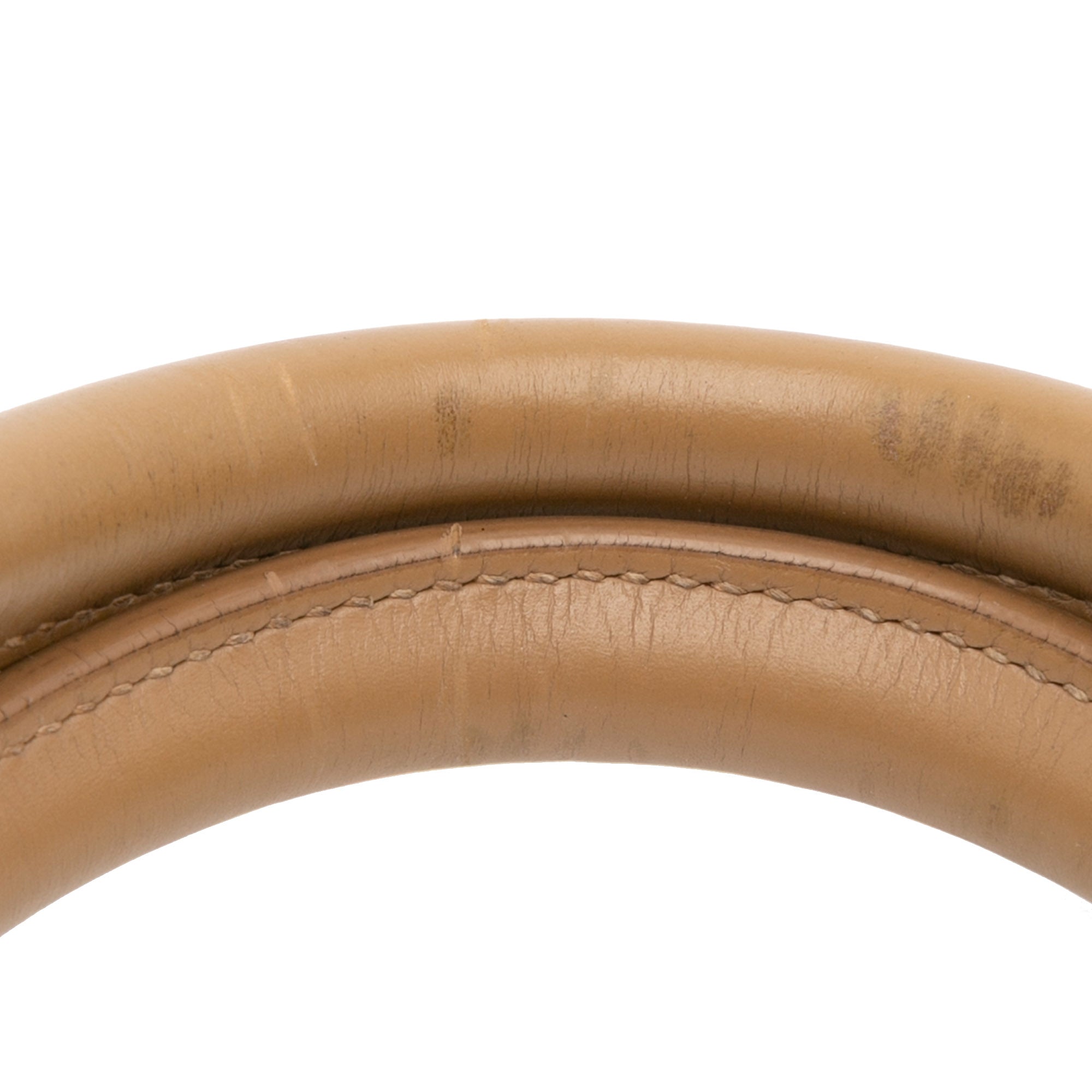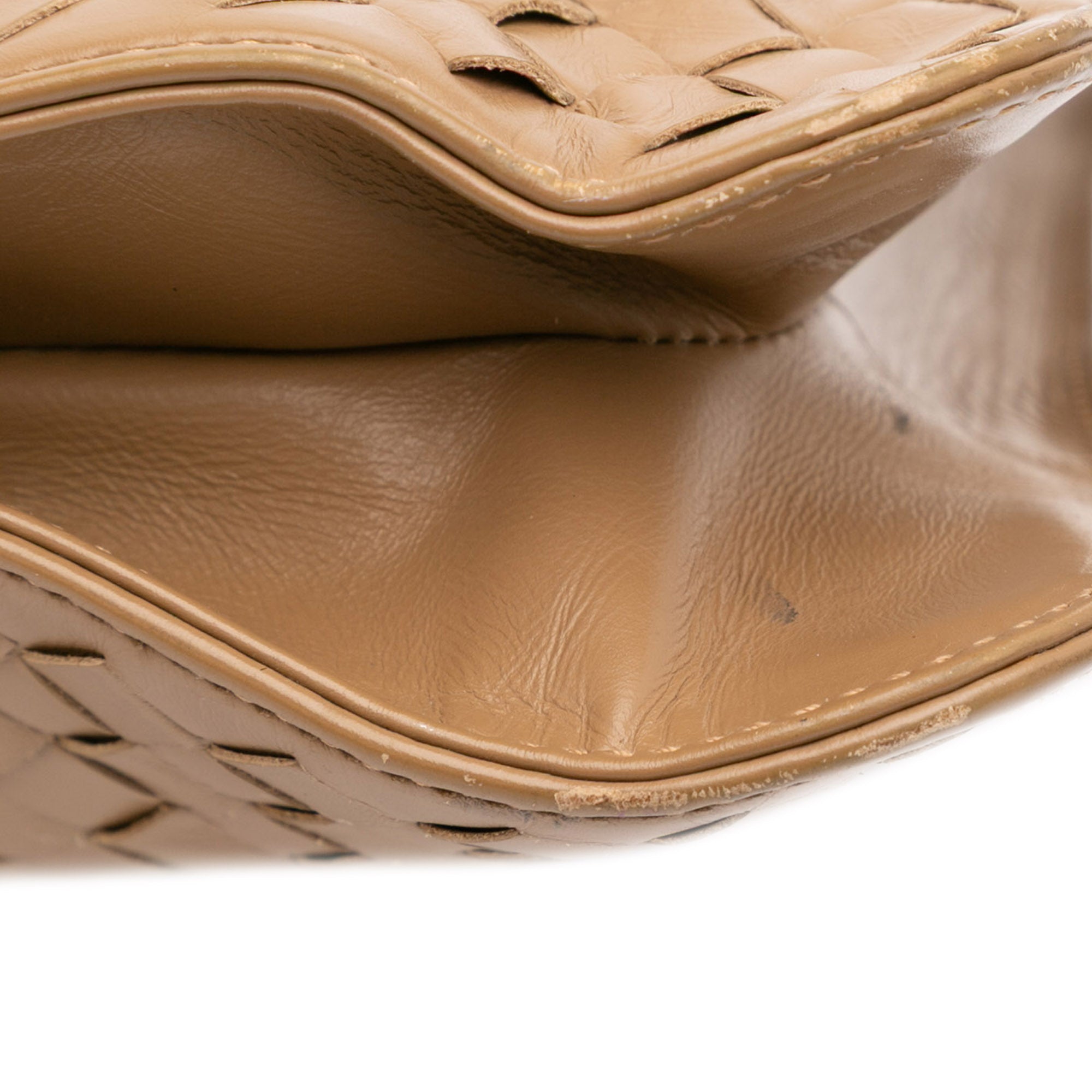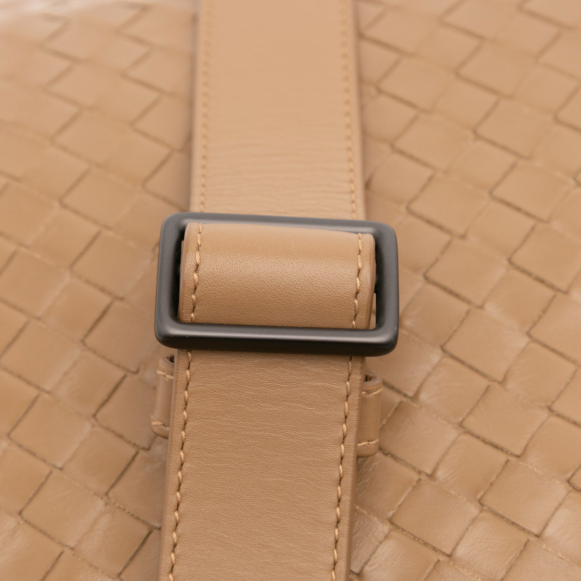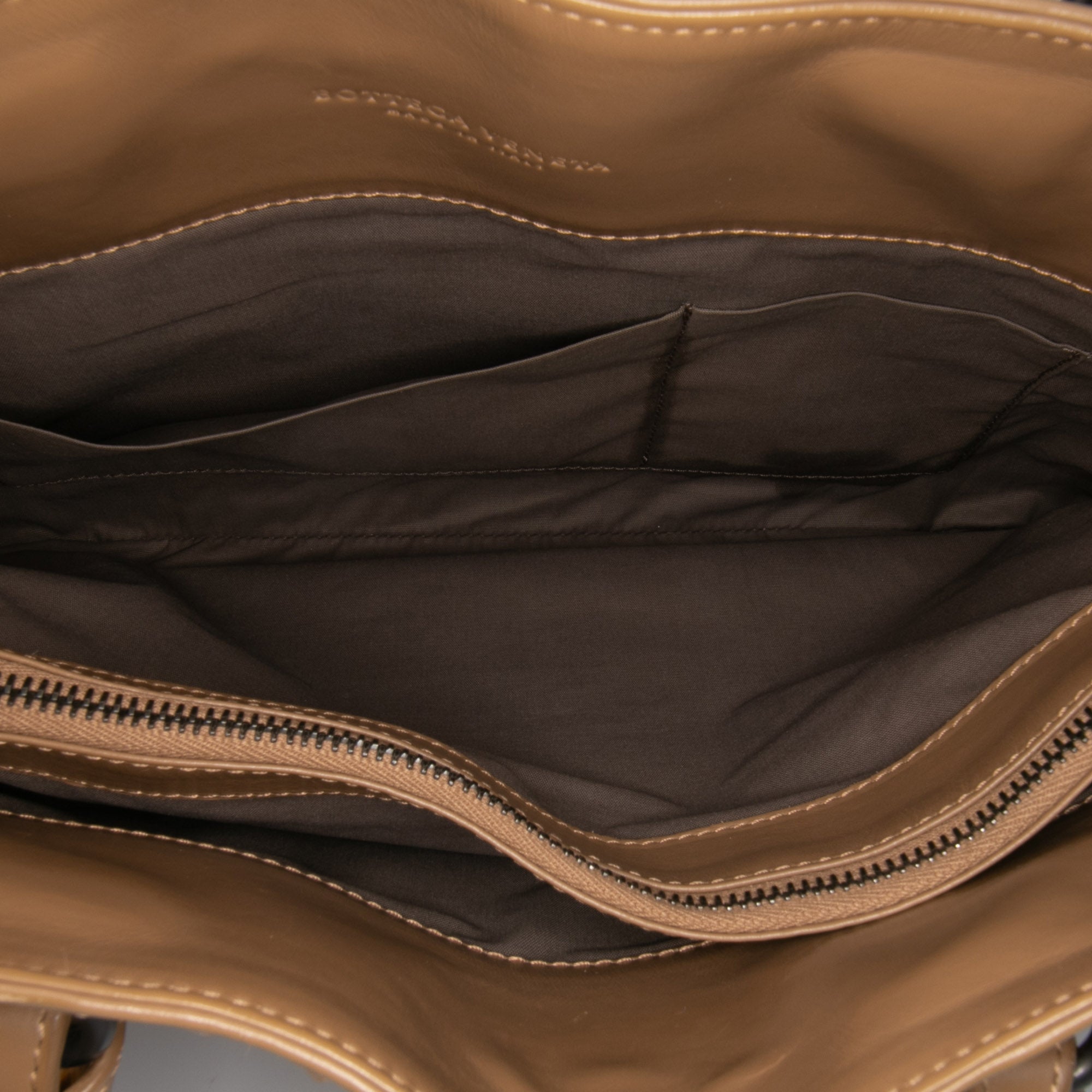 This business bag features a woven leather body, rolled handles, a detachable flat leather strap, an open top, an interior zip compartment, and interior slip pockets. Inclusion: Dust bag. Retail Price: 1570.00