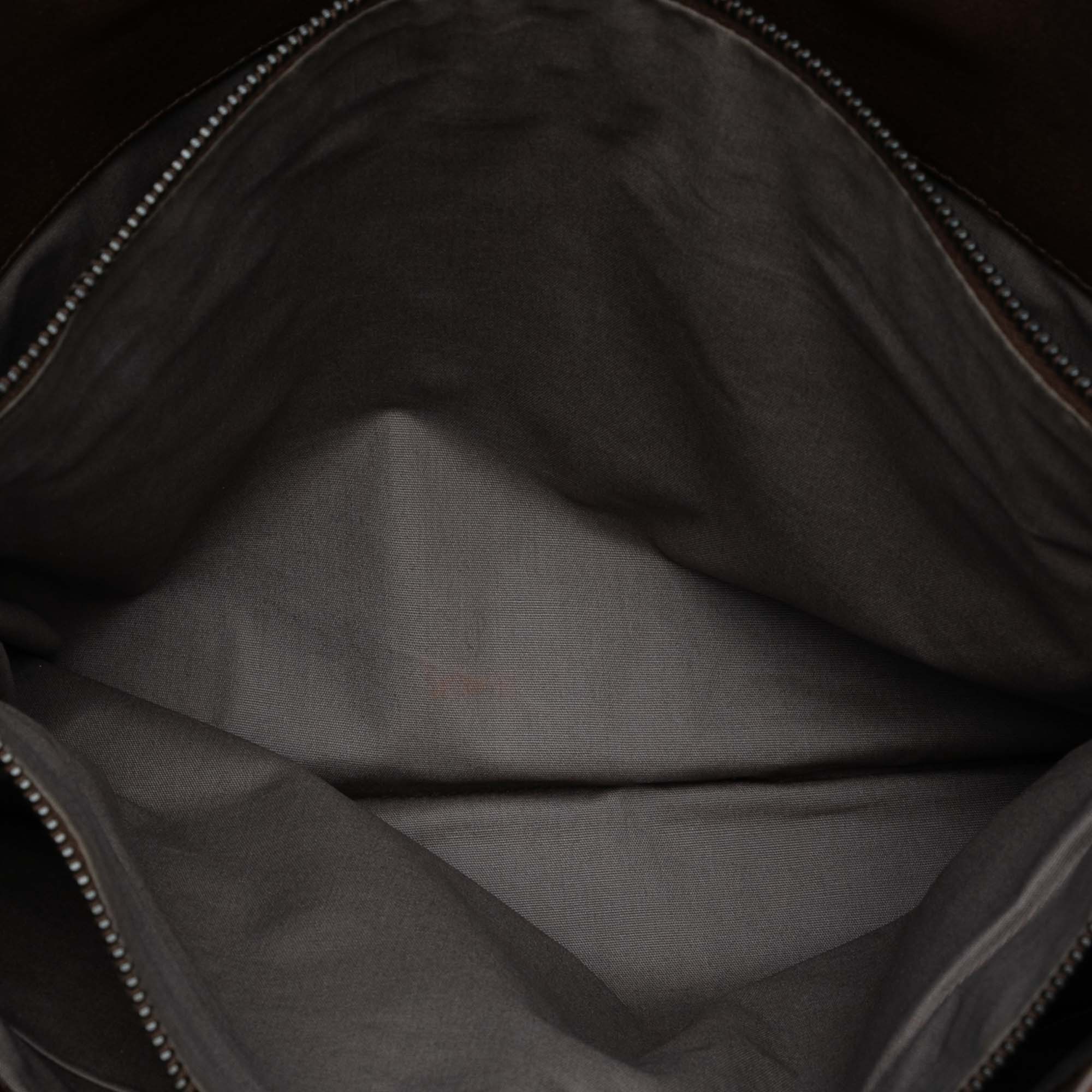 This business bag features a woven leather body, flat handles, an adjustable and detachable strap, a two way top zip closure, and interior zip and slip pockets. Retail Price: 3500.00