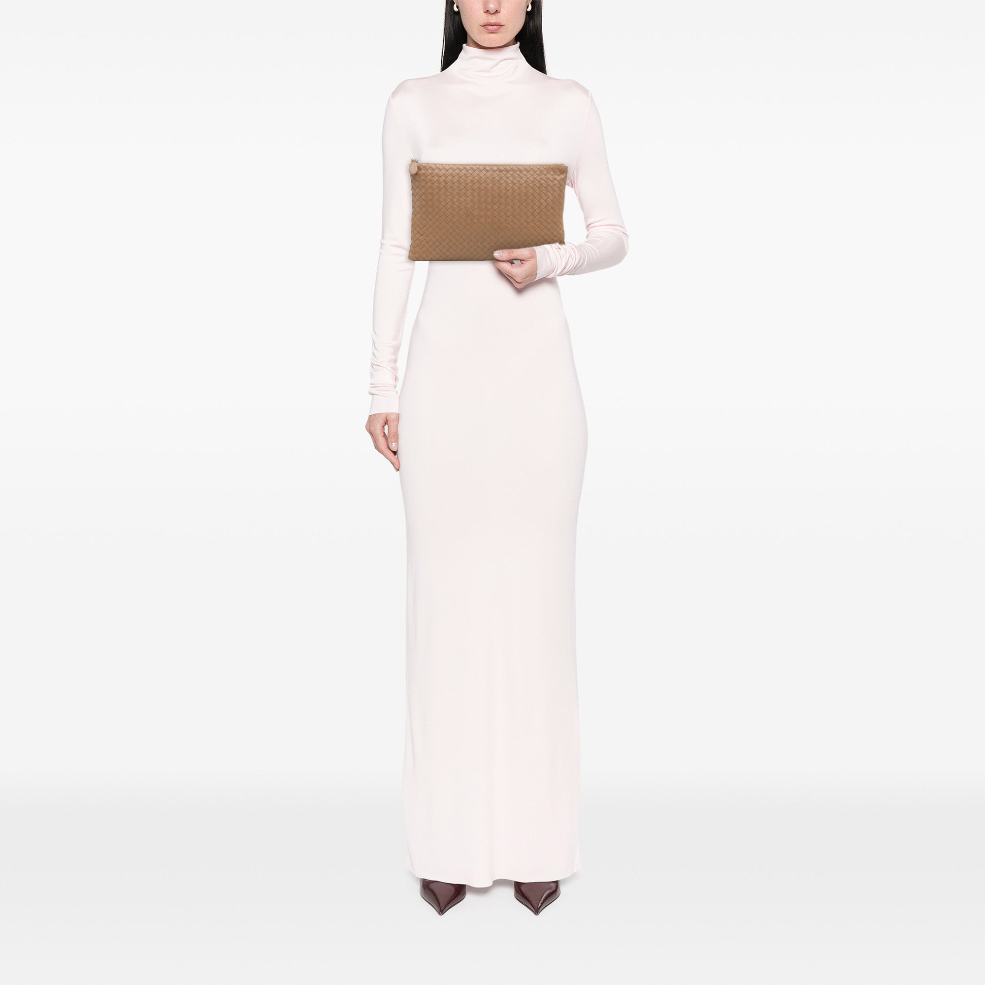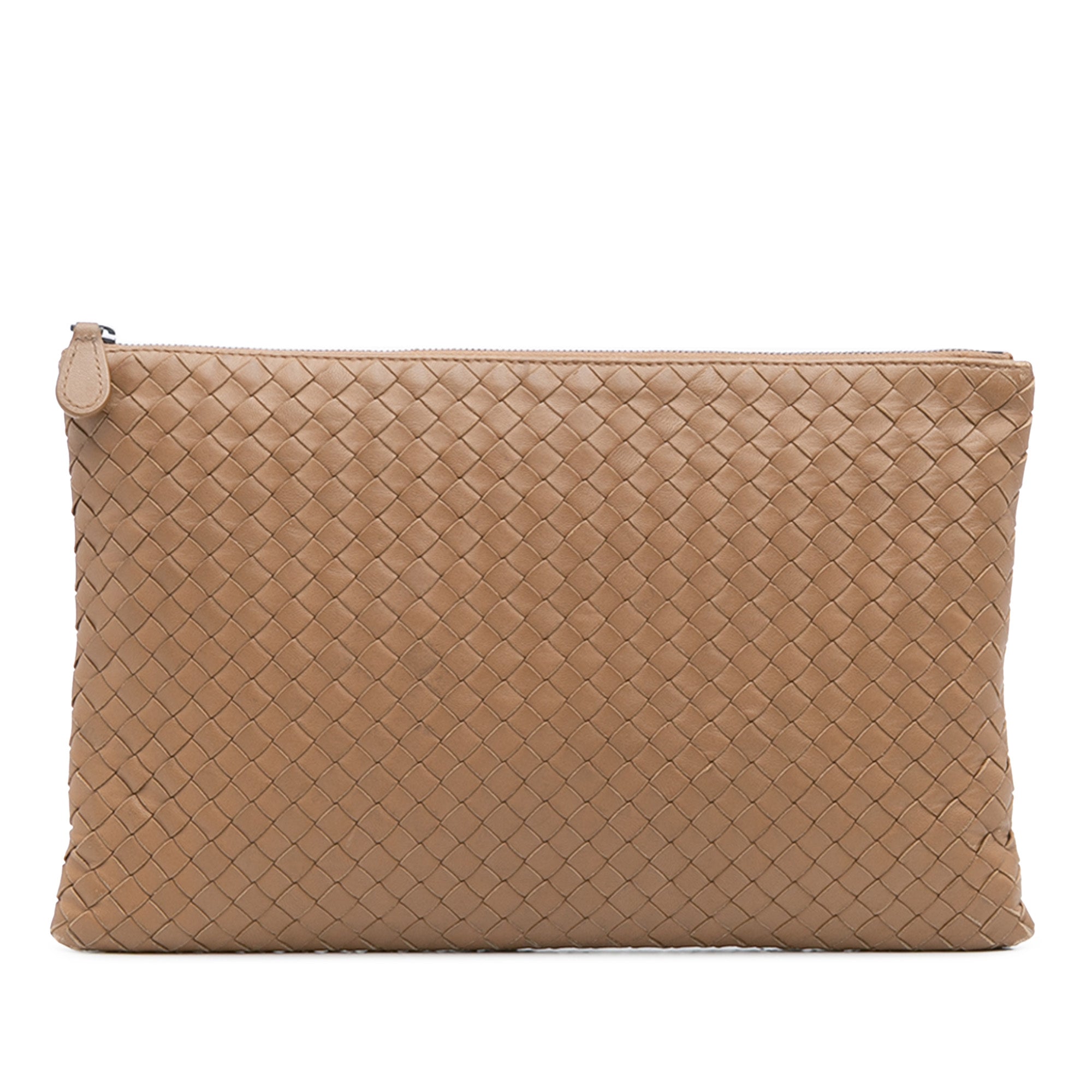 This clutch bag features a woven leather body, and a top zip closure. Retail Price: 1650.00