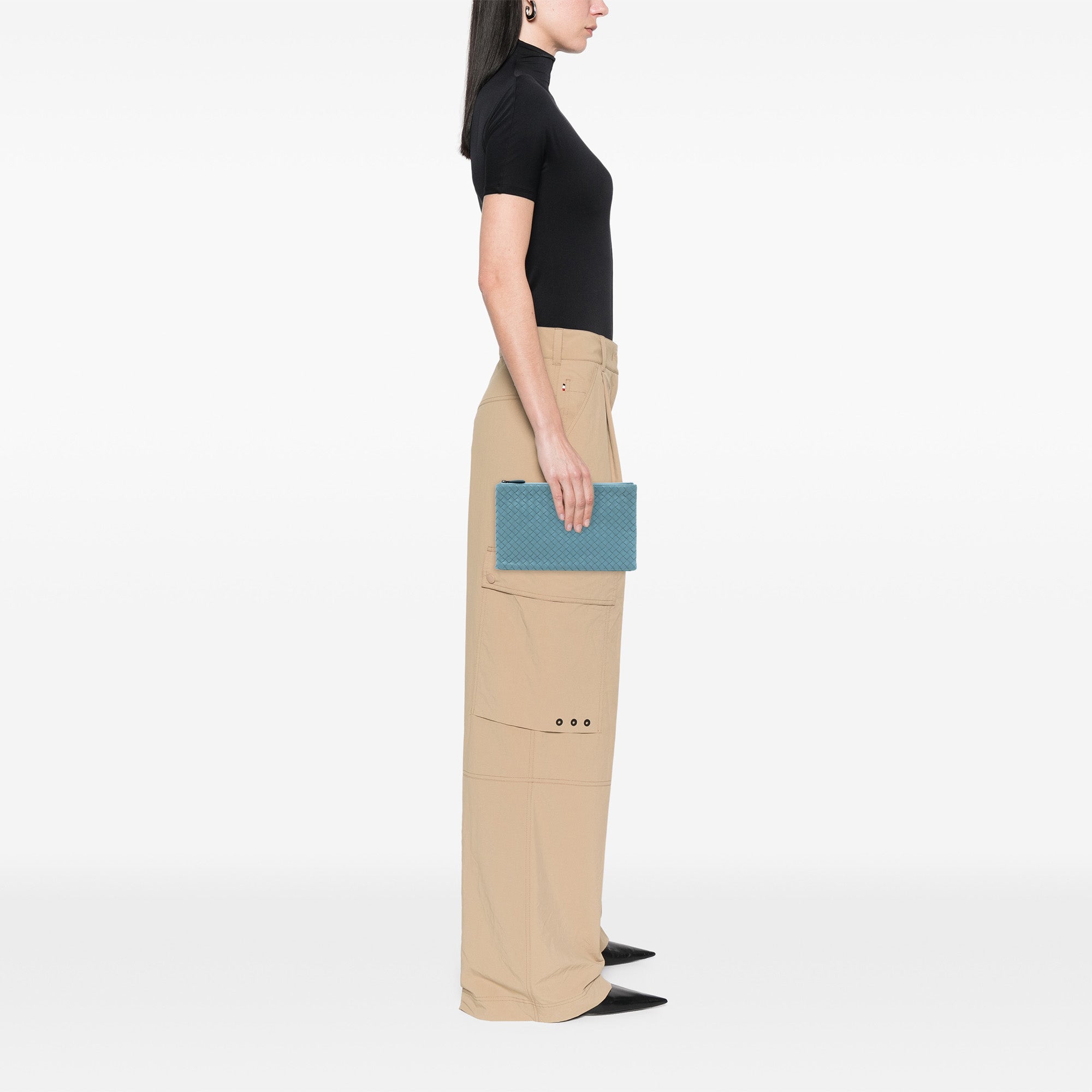 This clutch bag features a woven nappa leather body, and a top zip closure. Retail Price: 1300.00