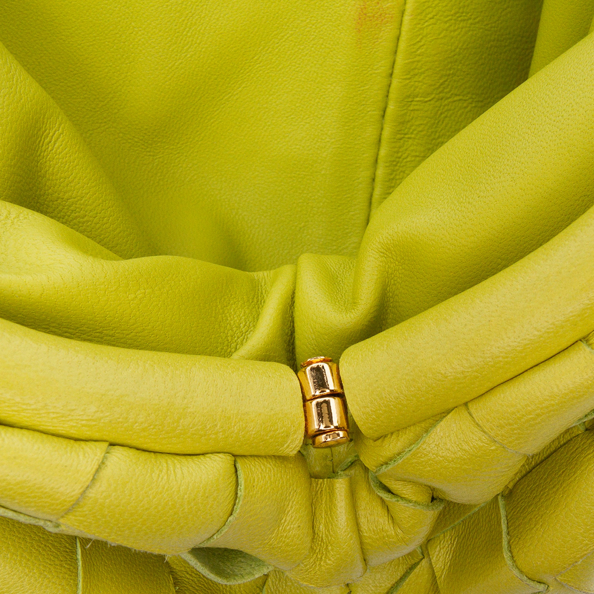 The Pouch features a woven leather body, flat leather strap, and a magnetic closure. Retail Price: 1980.00