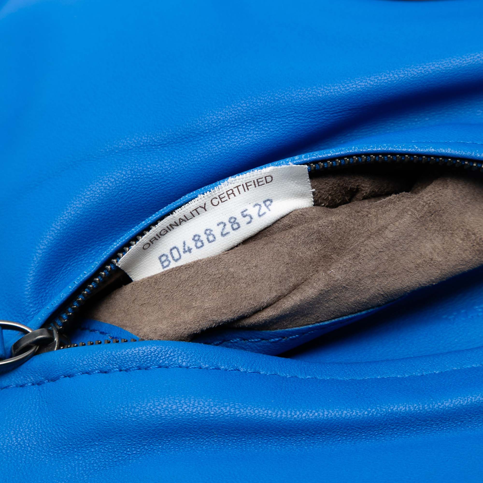 This clutch bag features a woven nappa leather body, a front flap with a turn lock closure, and an interior zip compartment. Retail Price: 1475.00