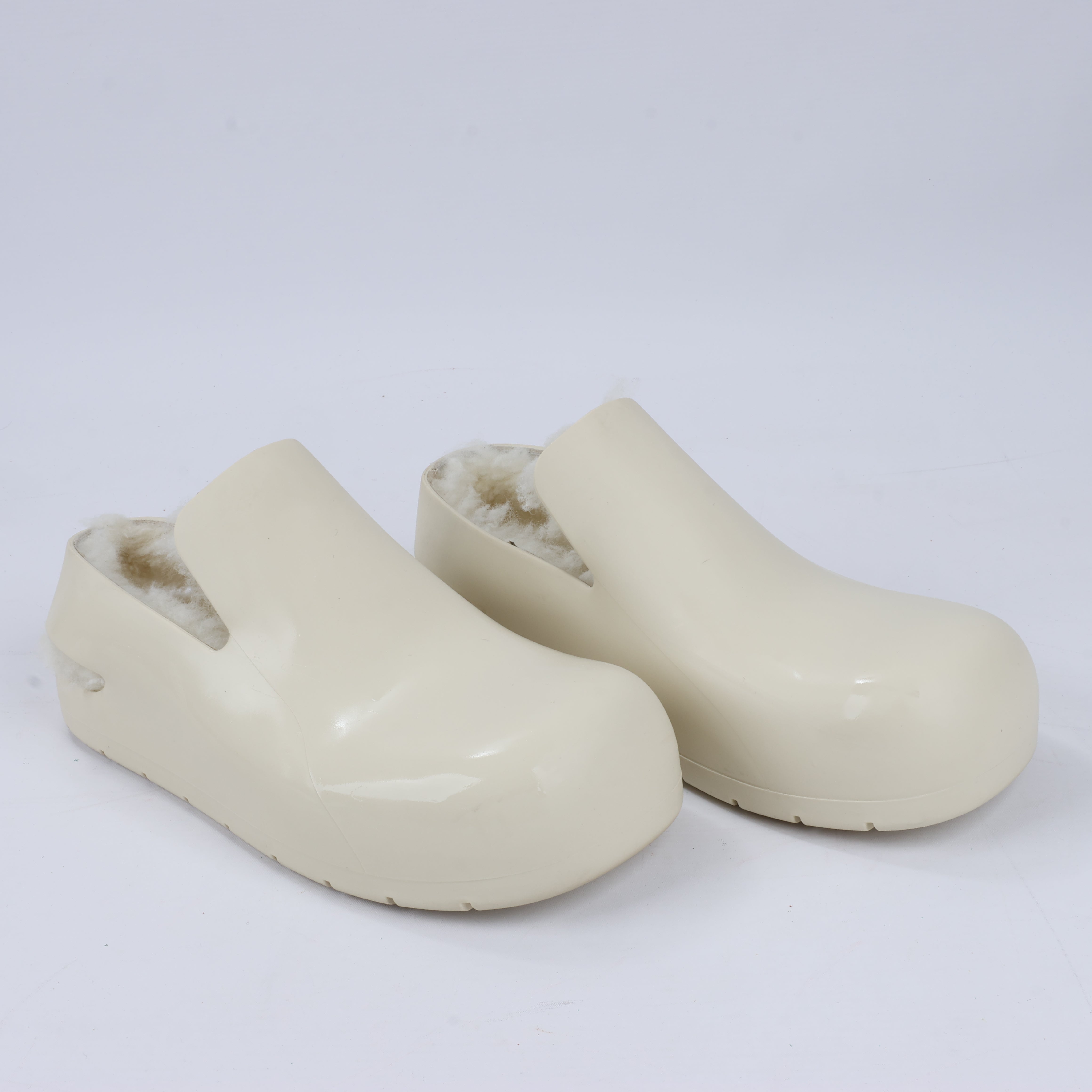 Brand: Bottega VenetaSize: 41 EUCondition: Never wornCondition Details: In excellent condition, just tried on few timesMain Colour: EcruColours: -Main material: RubberMaterials: ShearlingProduct Code: -Manufactured In: ItalyComes With: Dustbag