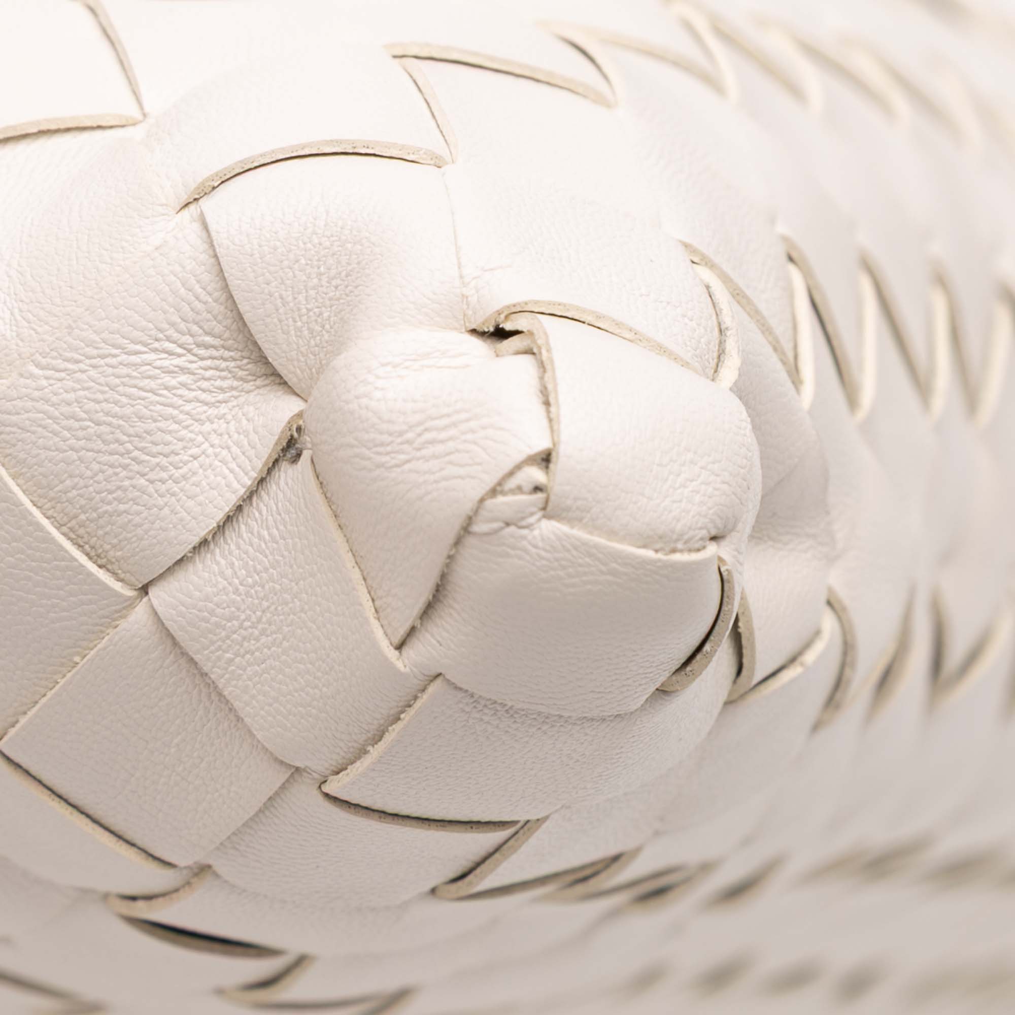 The Hop features a woven leather body, a single woven leather strap, an open top with magnetic snap closure, and an interior zip pocket. Inclusion: Dust bag. Retail Price: 4200.00