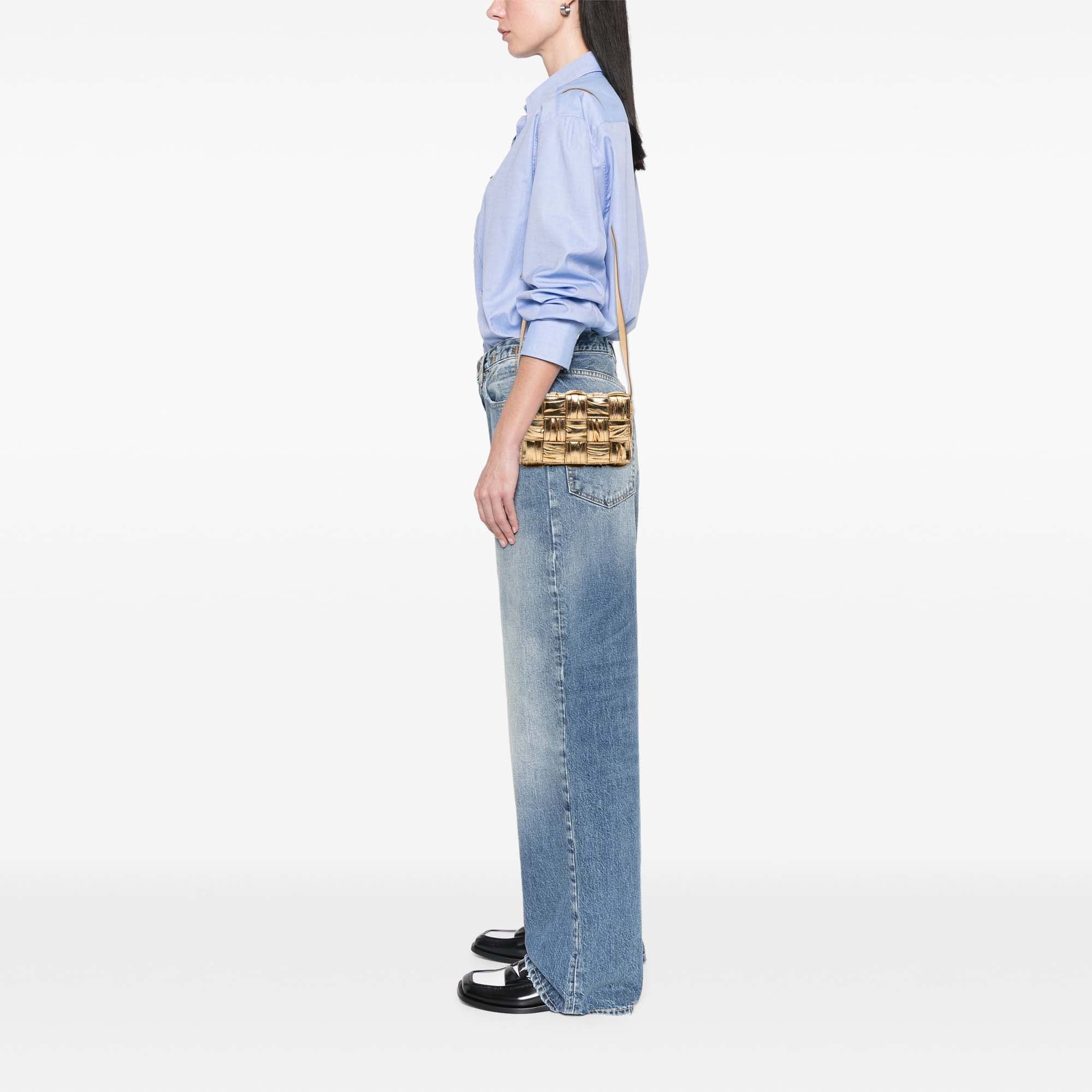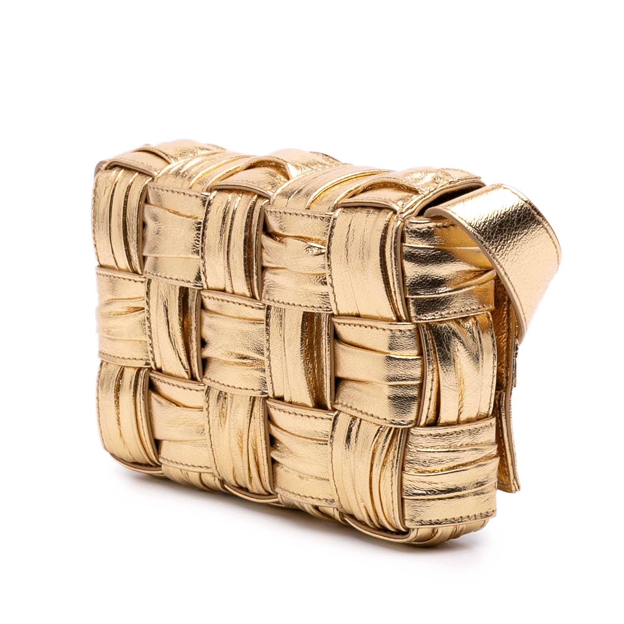 Bottega Veneta Small Metallic Calfskin Intreccio Plisse Cassette Crossbody