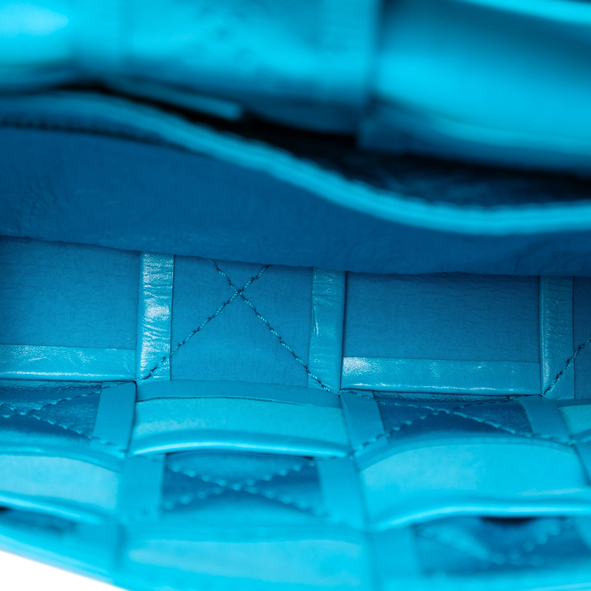 The Cassette features a woven leather body, a flat leather shoulder strap, a front flap closure, and an interior zip pocket. Retail Price: 1650.00