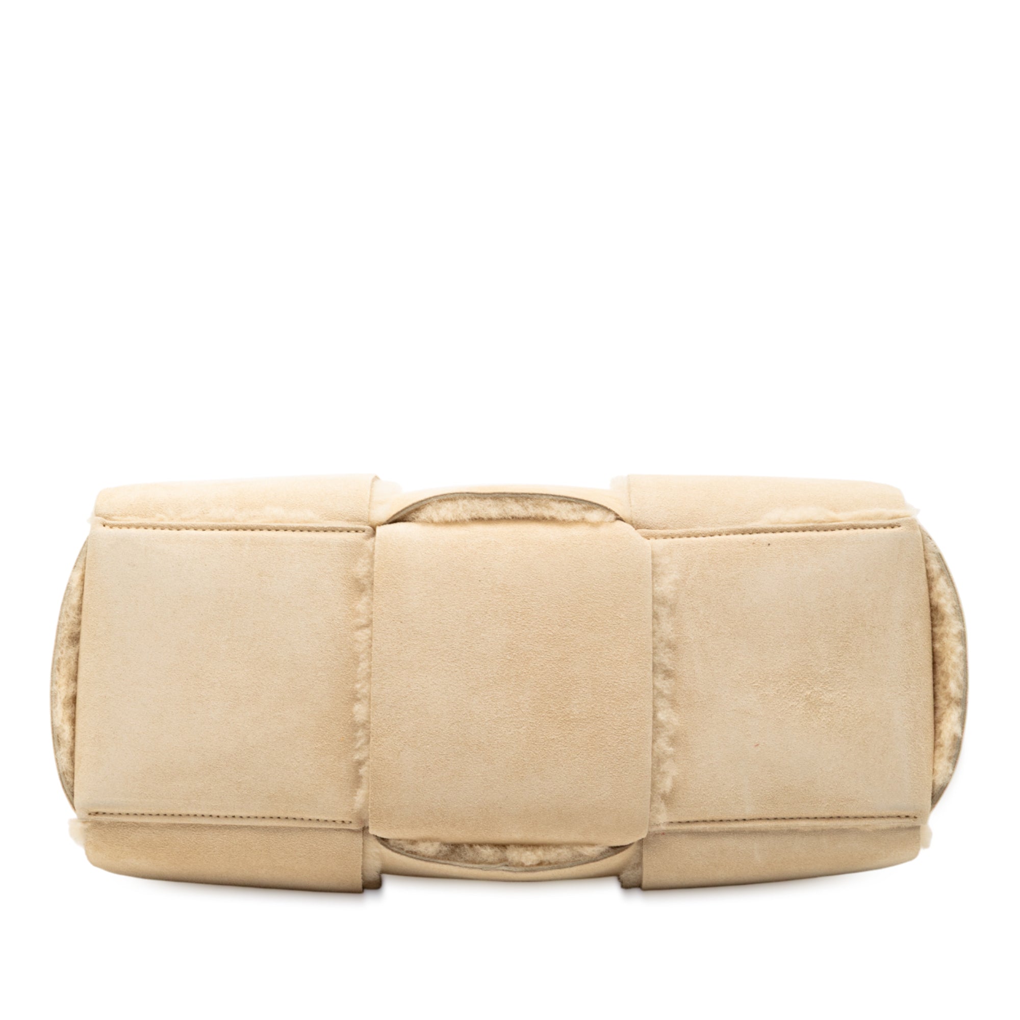 The Arco tote bag features a suede leather and shearling body, rolled leather handles, and an open top with leather knot closure. Inclusion: Dust bag. Retail Price: 3200.00