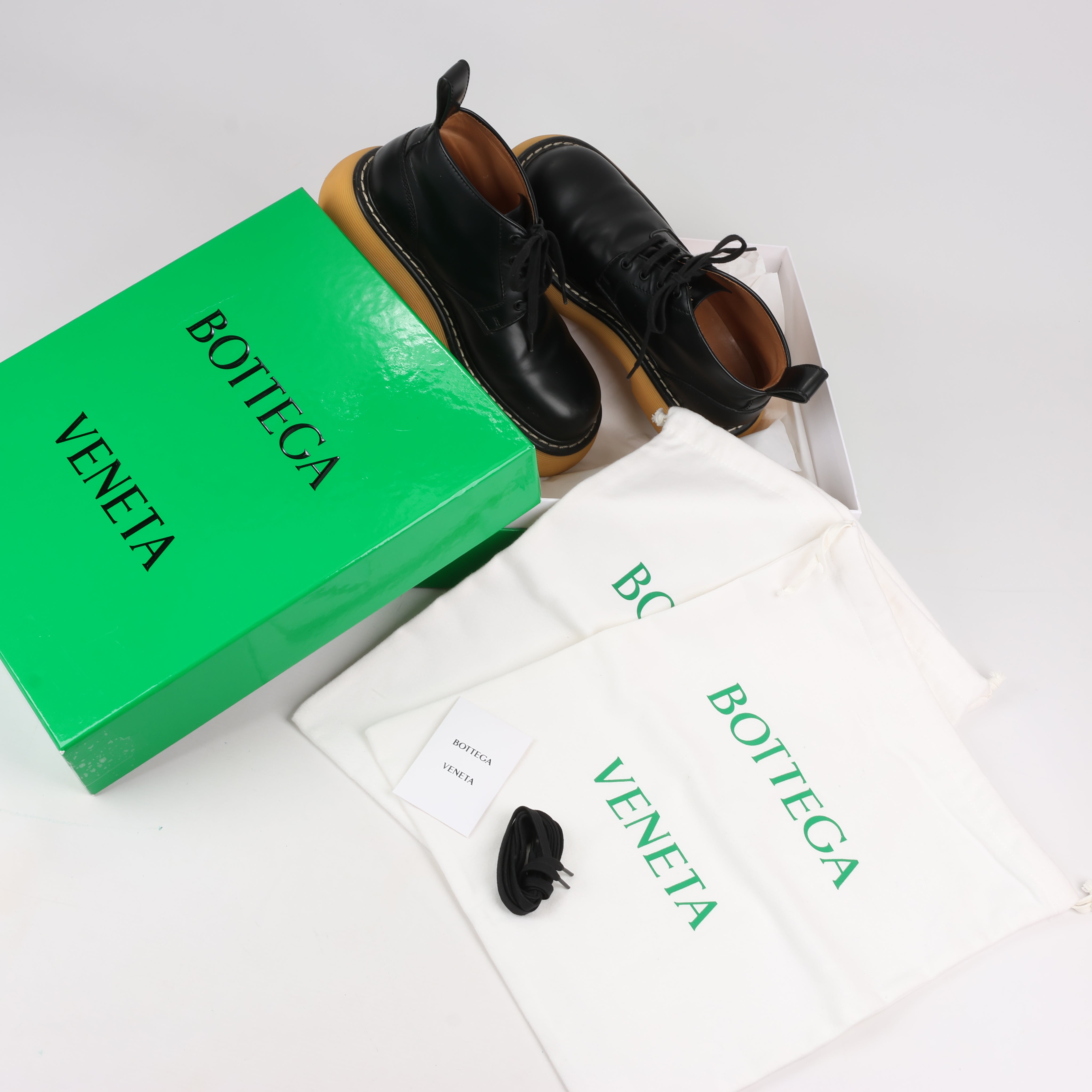 Brand: Bottega VenetaSize: EU 39 Platform: 5.5 cmCondition: ExcellentCondition Details: Light creases and scratches on leather, minor signs of use on the rubber outsole, but overall worn only a few times.Main Colour: Black Colours: YellowMain material: Leather Materials: RubberProduct Code: -Manufactured In: ItalyComes With: Box, dustbags, extra laces