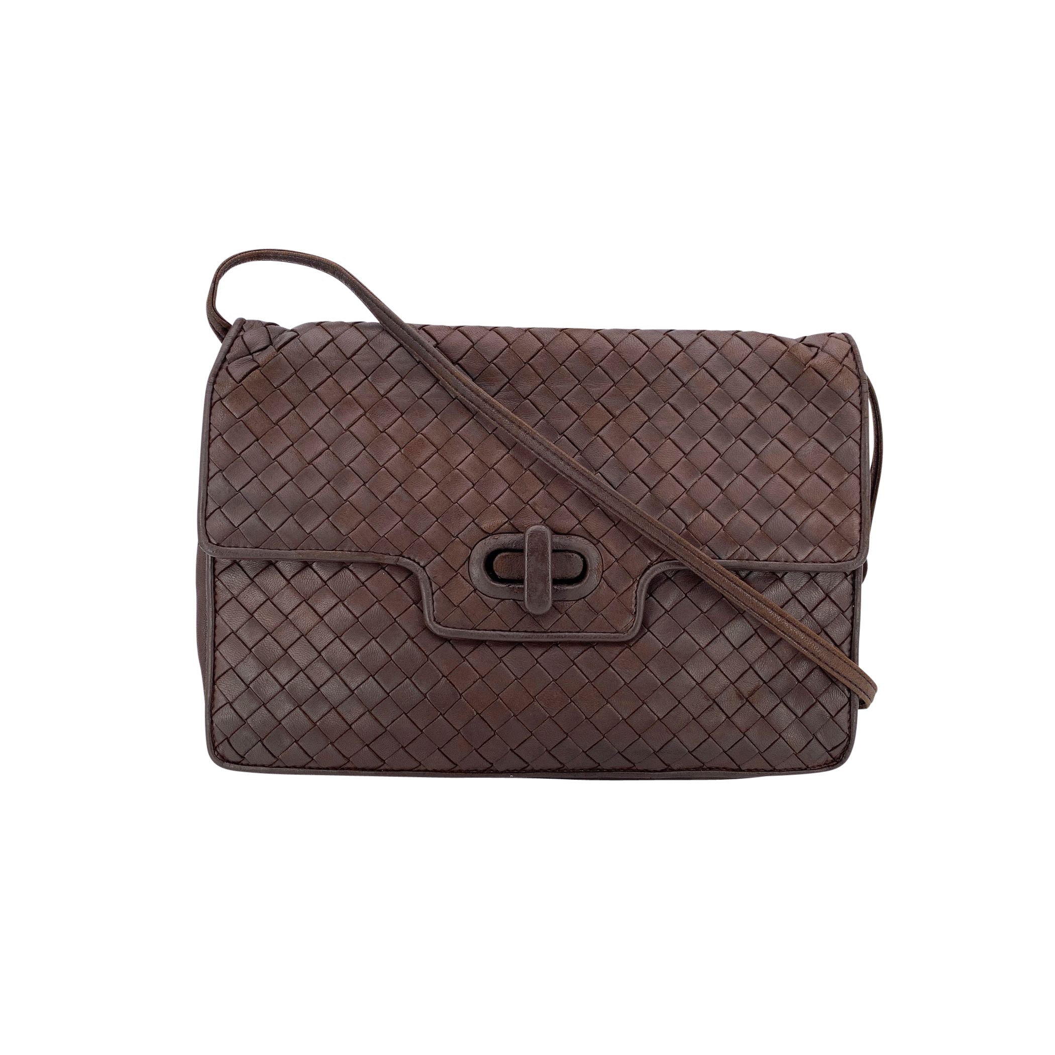 Vintage Bottega Veneta Intrecciato Crossbody - Woven Elegance With Timeless Charm A True Ode To Understated Luxury, This Vintage Bottega Veneta Crossbody Bag Showcases The Brand's Iconic Intrecciato Woven Leather In a Rich Brown. Known For Its Artisanal Craftsmanship And Quiet Sophistication, This Piece Embodies Everything That Makes Vintage Bottega So Covetable. The Design Features a Softly Structured Flap With a Turn Lock Closure For a Touch Of Bohemian Elegance. Inside, The Bag Is Lined In Beige Satin, With 2 Open Pocket Under The Flap And a Side Zip Pocket Inside To Keep Your Small Essentials Secure. Rear Open Pocket. Finished With The Classic "Bottega Veneta - Made In Italy" Tag Inside, This Crossbody Is More Than Just a Bag-it's a Piece Of Design History, Handwoven With Care And Intention. Compact, Effortless, And Rich With Texture, It's The Kind Of Vintage Treasure That Becomes More Beautiful With Time.