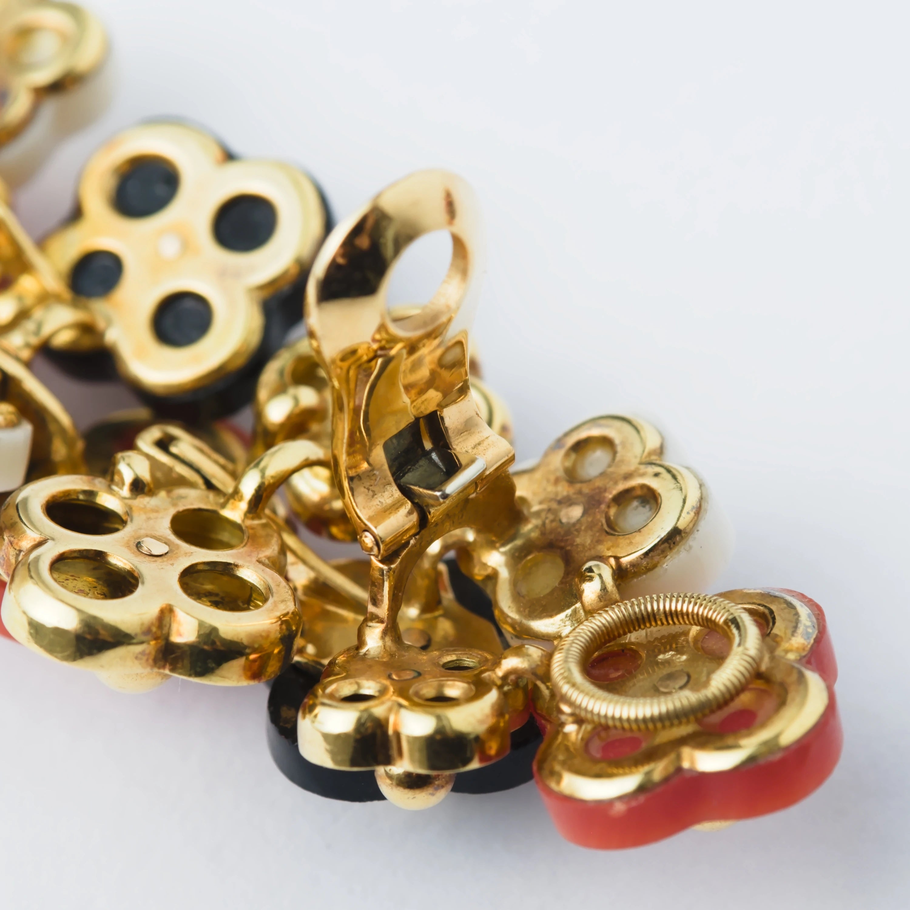 Bulgari Gold, Coral, Onyx & White Agate Earrings - '90s