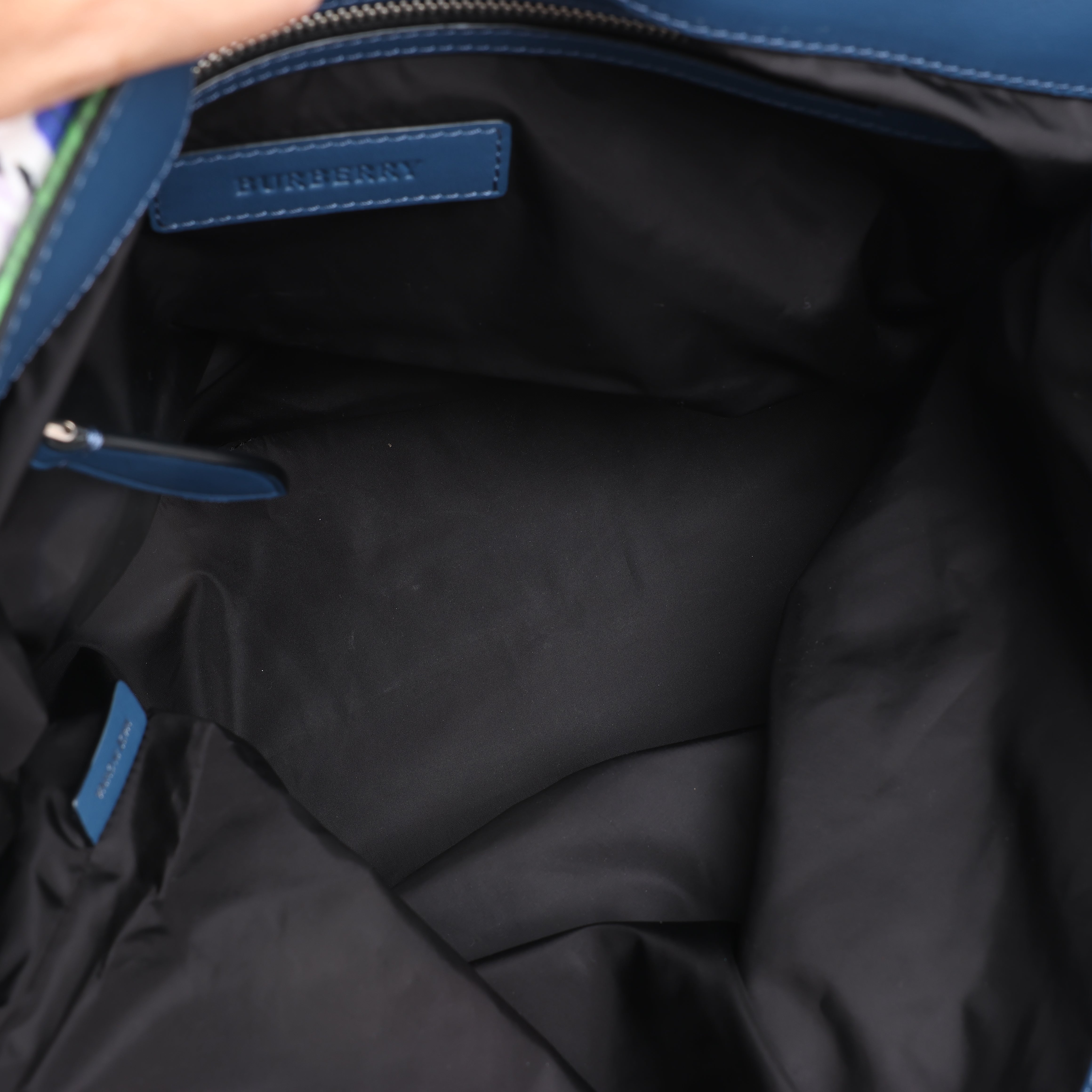 The Burberry Graffiti Logo Printed Messenger Bag Multicolor is a bold, statement accessory. Featuring a vibrant graffiti print with the iconic Burberry logo, it offers a spacious interior, adjustable strap, and front zip pocket, combining street-style edge with practical functionality.