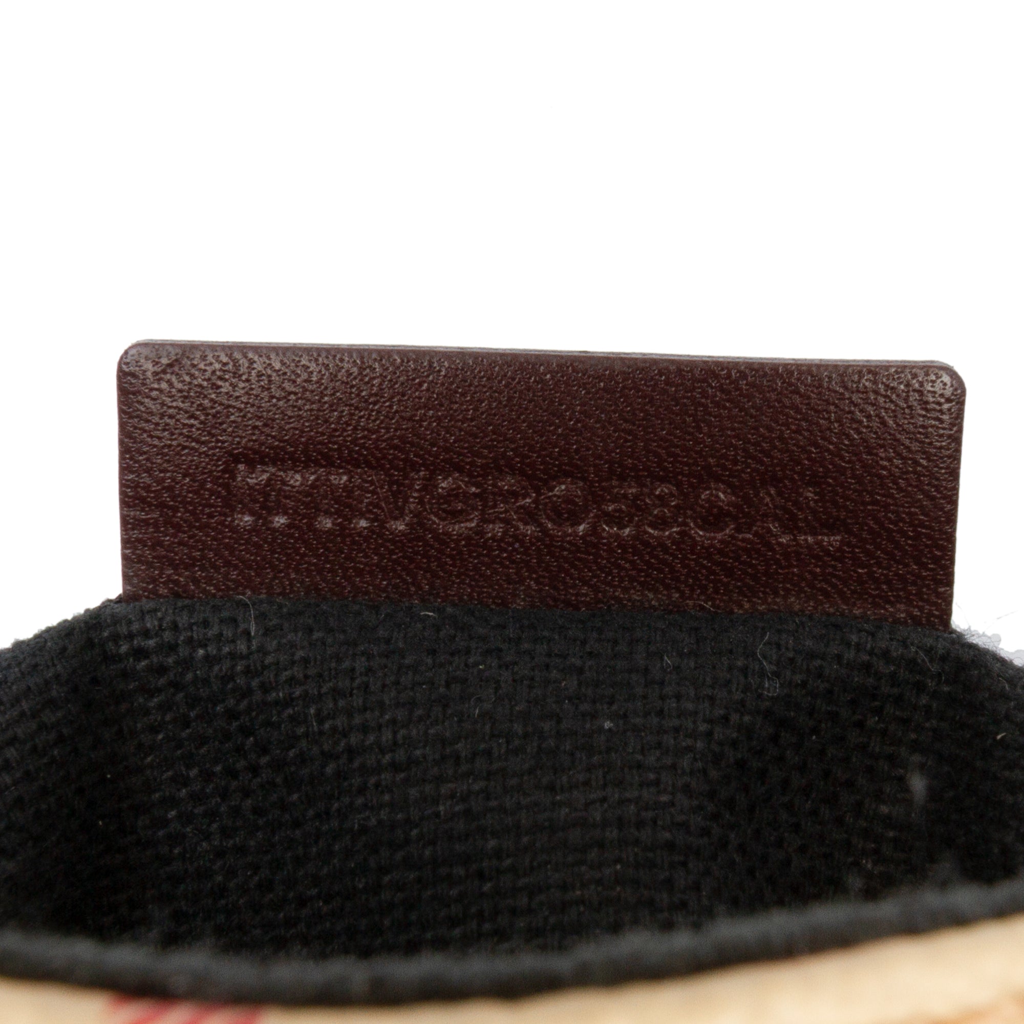 This crossbody bag features a haymarket check coated canvas body with leather trim, a flat shoulder strap, a top flap with magnetic snap closure, an exterior side slip pockets, and interior zip pocket. Retail Price: 1300.00