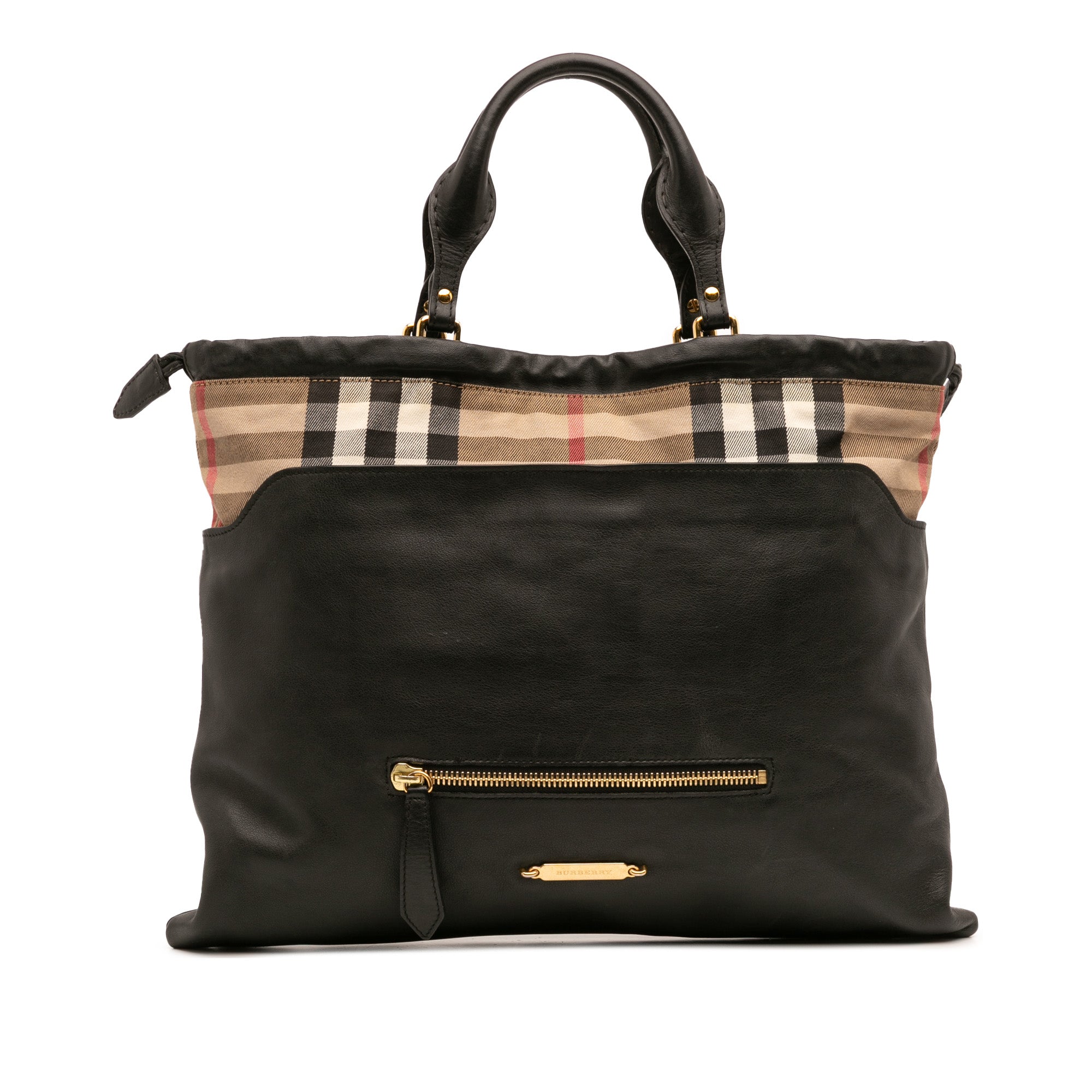 Burberry House Check Trimmed Leather Big Crush Convertible Tote