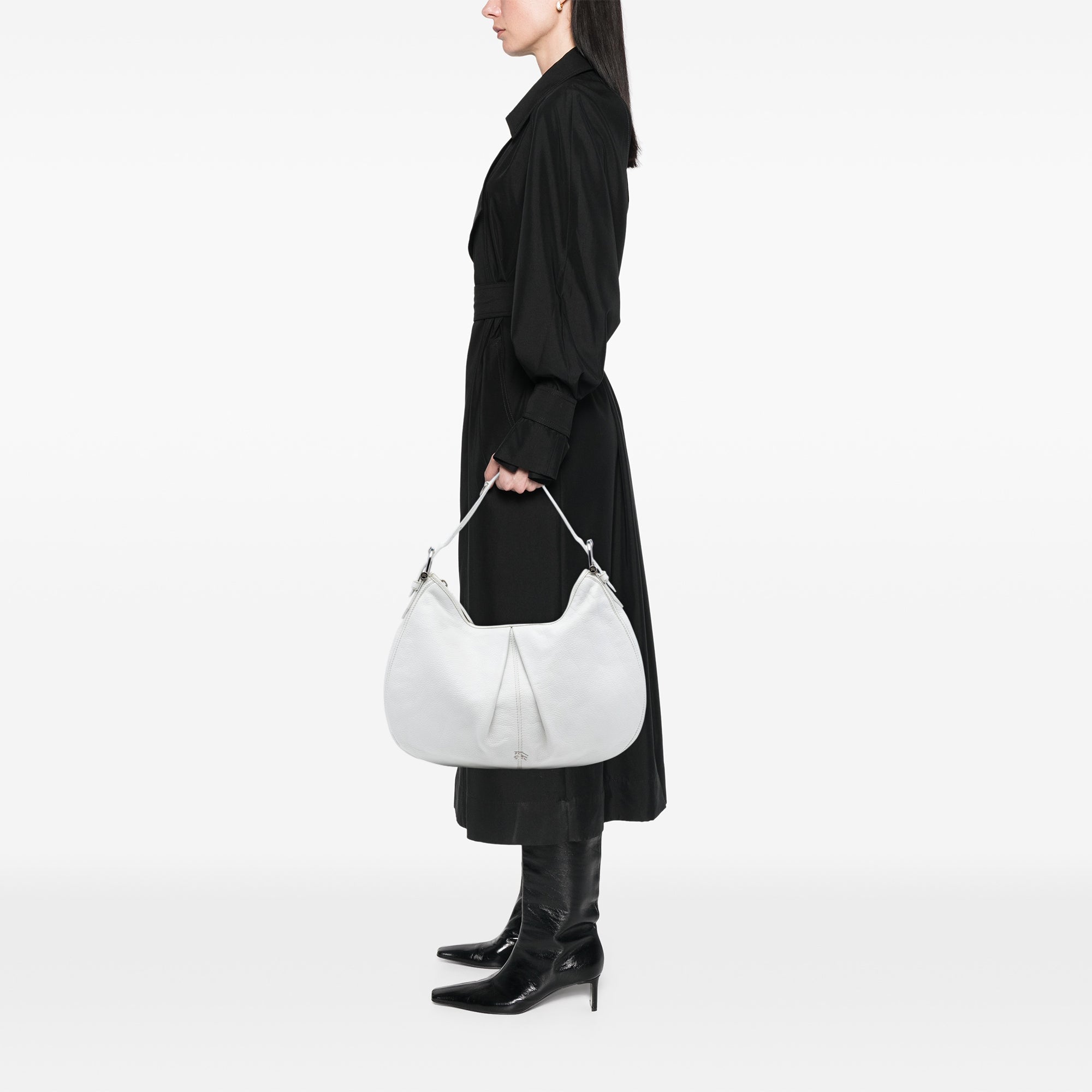 The Malika features a leather body, an adjustable flat leather strap, a top zip closure, and interior zip and slip pockets. Retail Price: 1202.00