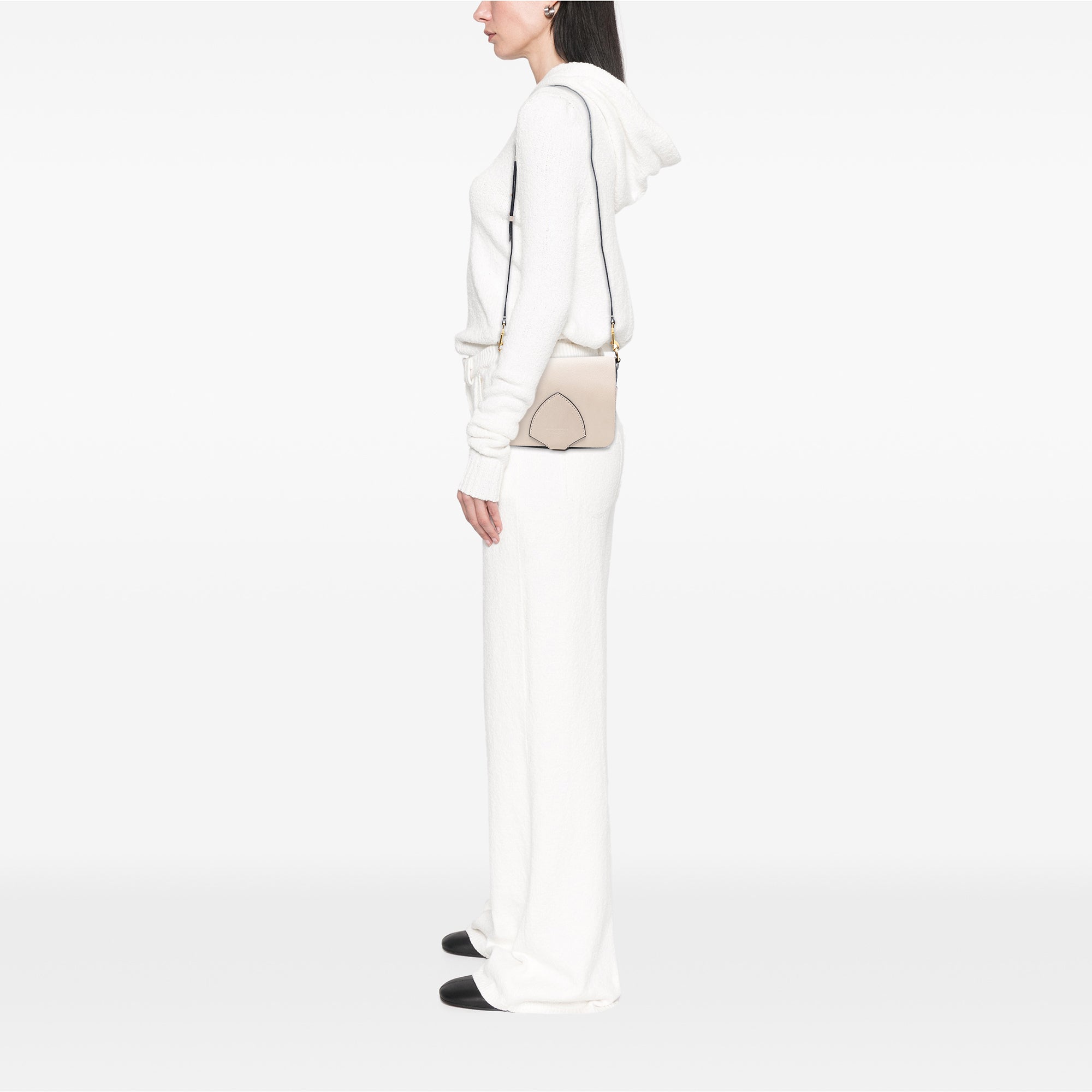 The Bridle Square features a leather body, an adjustable flat leather strap, a front flap with buckle closure, an under-flap pocket, and an interior slip pocket, Retail Price: 645.00