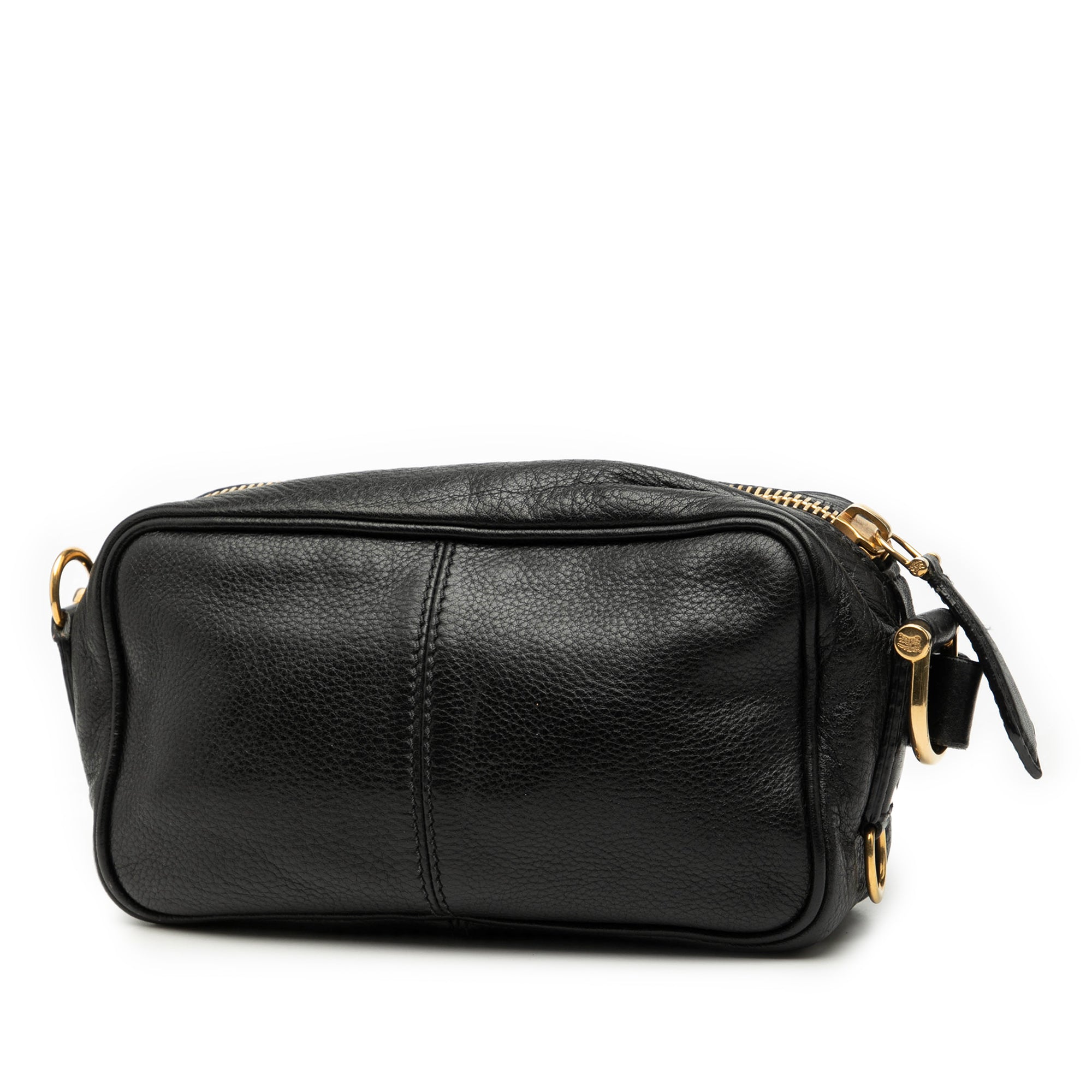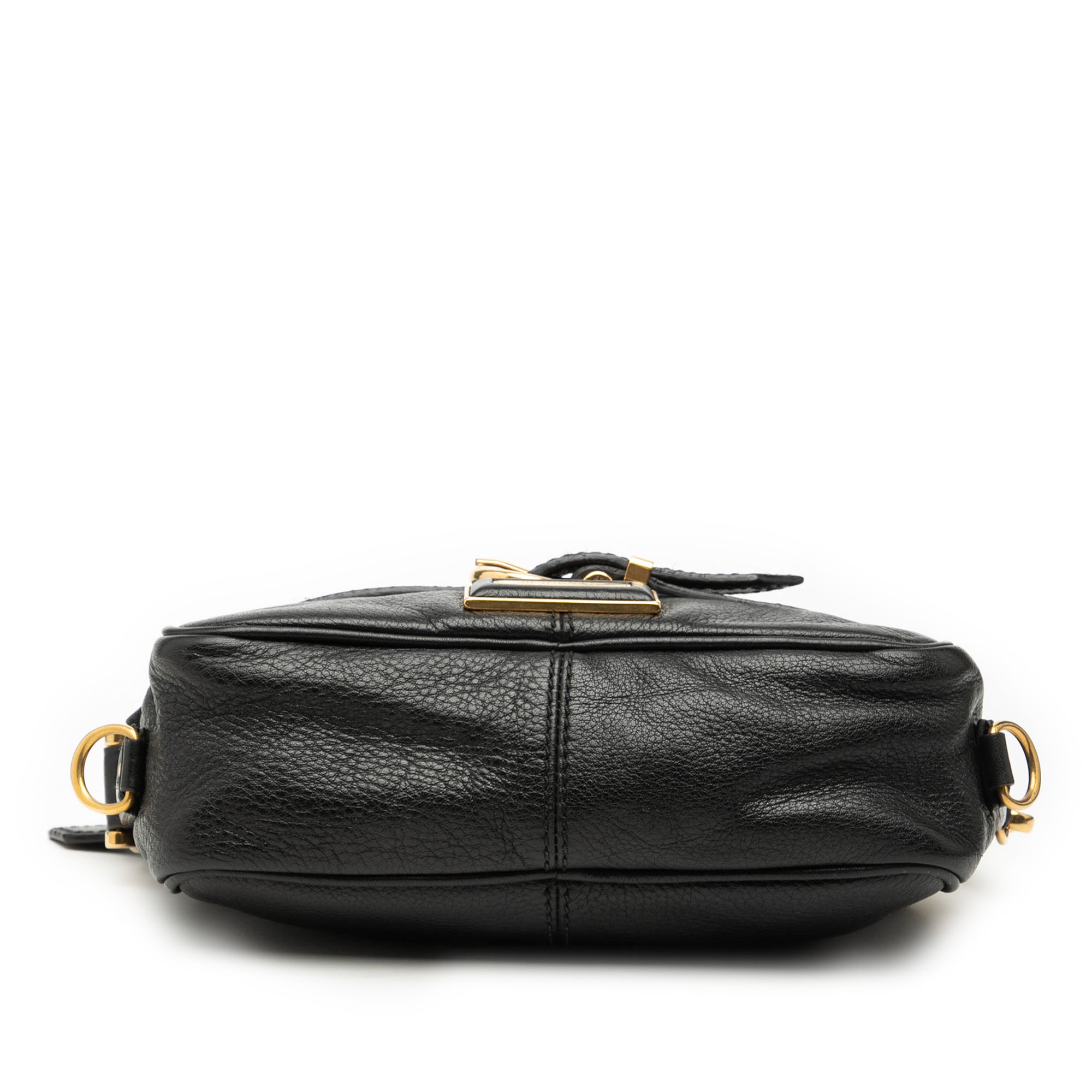 This crossbody bag features a leather body with a front belt detail, an adjustable flat leather shoulder strap, a top zip closure, and interior zip and slip pockets. Inclusion: Dust bag. Retail Price: 300.00