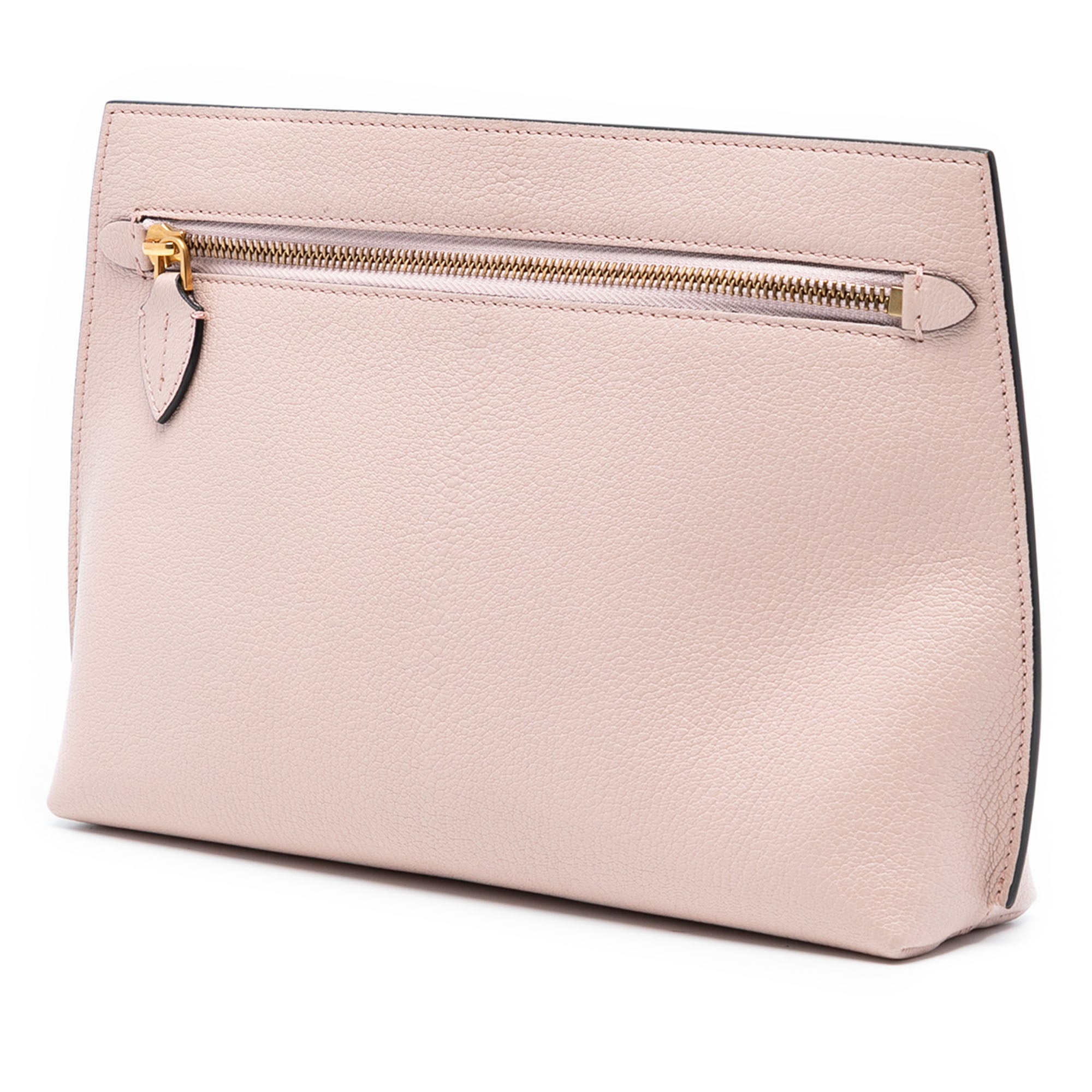This clutch bag features a leather body and an exterior back closure. Retail Price: 650.00